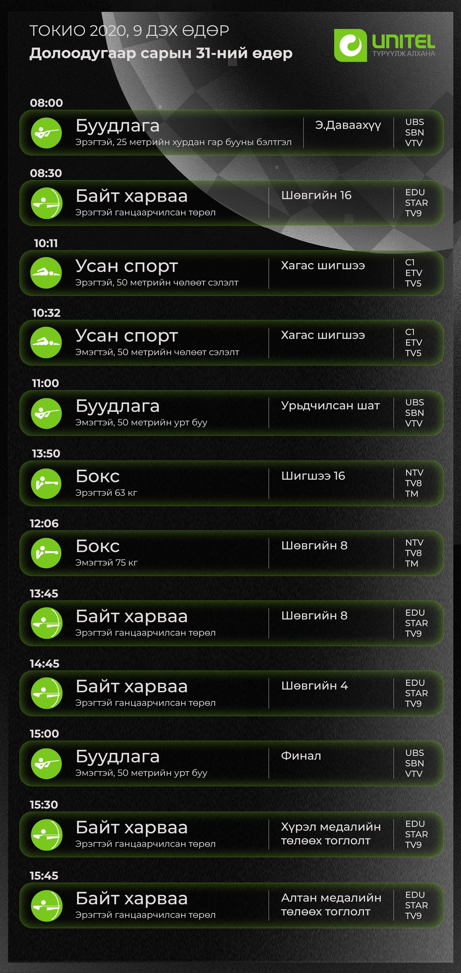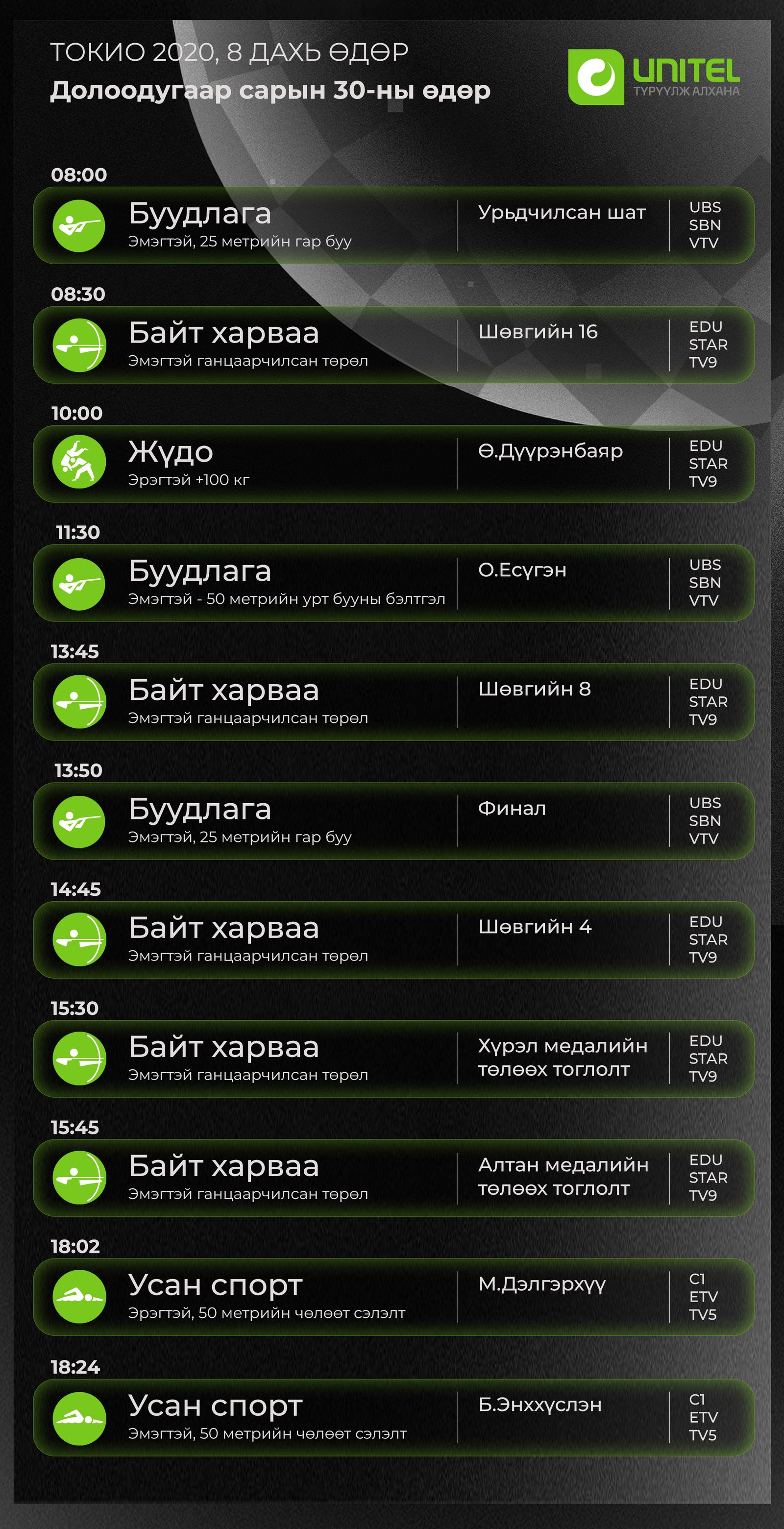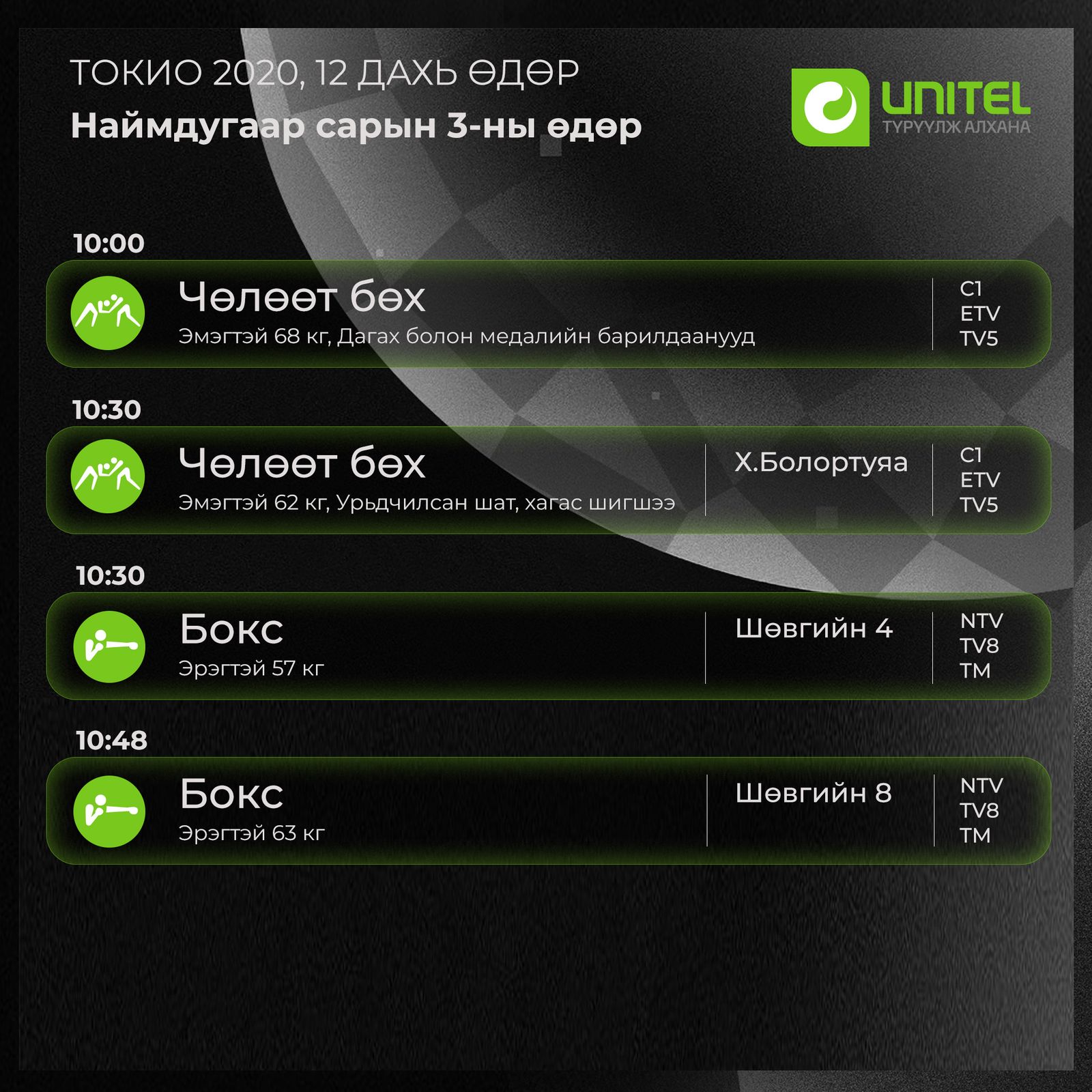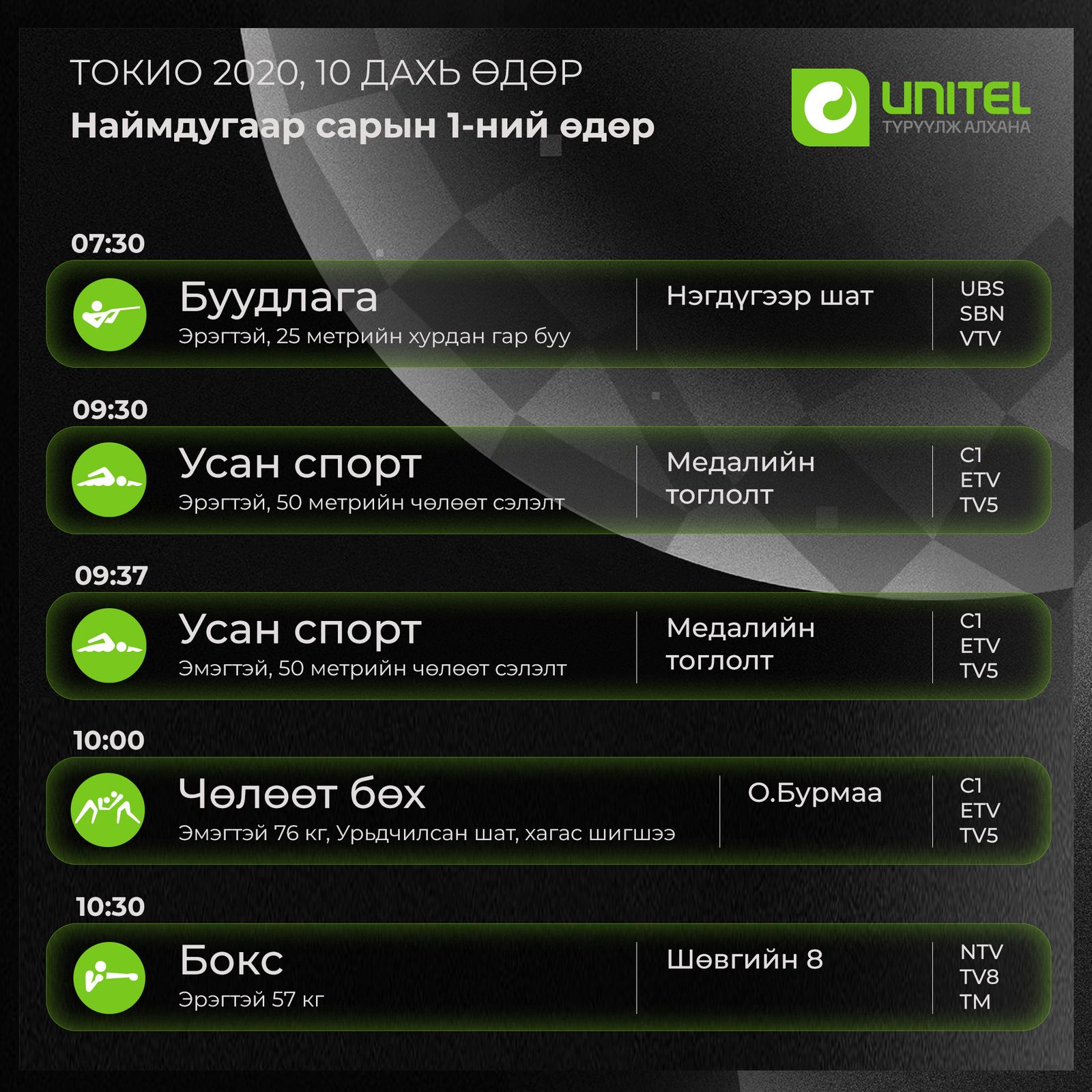 Энэхүү нийтлэлийг танд Юнителийн Дараа төлбөрт үйлчилгээтэй хамтран хүргэж байна. Та “Токио-2020” олимпын сэтгэл догдлом тоглолтуудыг хүссэн газраасаа үзэхийг хүсвэл LookTV Аппликейшнаар үзээрэй. LookTV үнэгүй үзэх эрхтэй, Дараа төлбөрт үйлчилгээний олон багцаас өөрт тохирох багцыг ЭНД дарж сонгоорой.