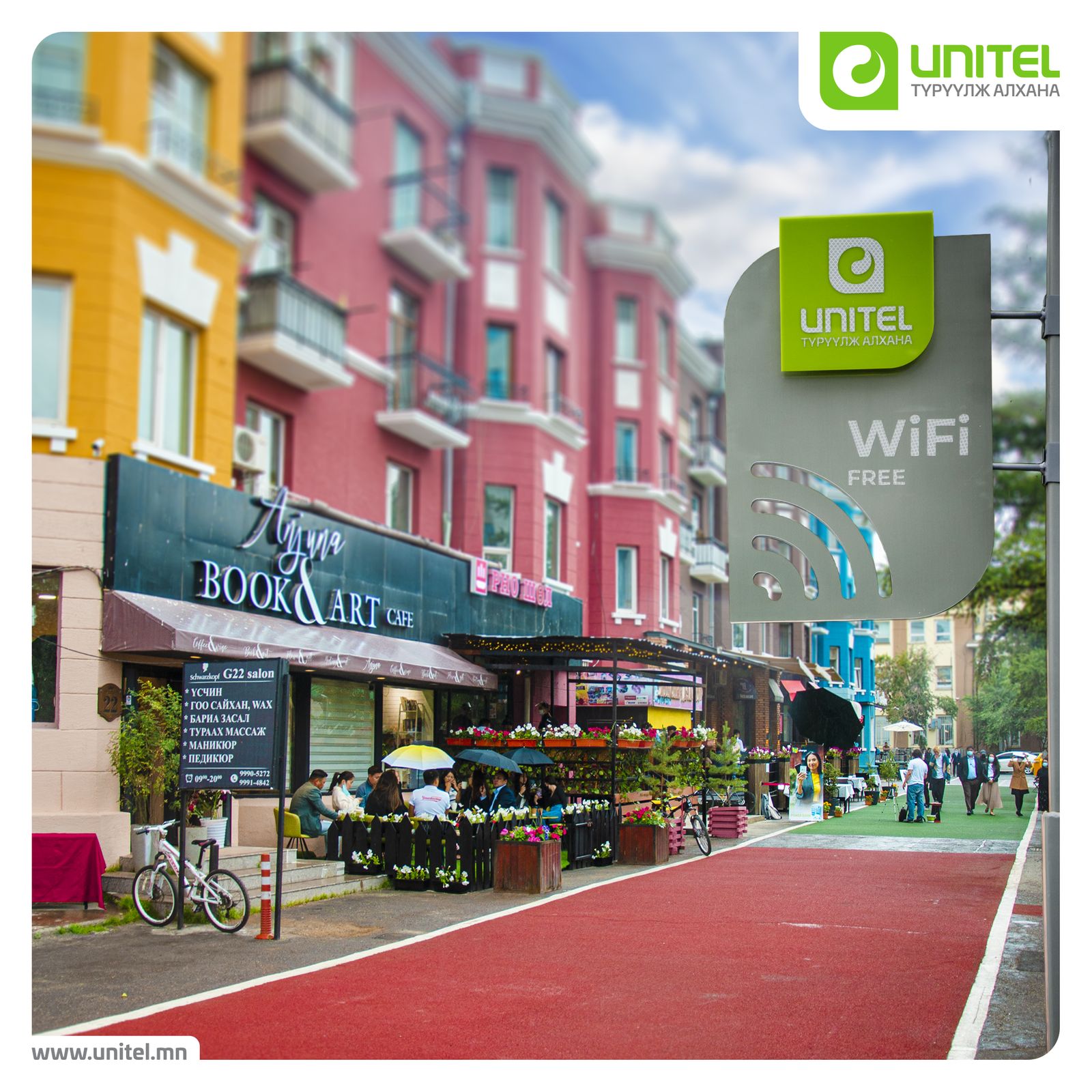 Тус гудамжинд ном, цэцгийн худалдаа, ресторан, кофе шоп зэрэг 12 аж ахуйн нэгж өдөр бүр өглөө 06:00-22:00 хооронд үйл ажиллагаагаа явуулж, өөрсдийн гэсэн онцлогтой цэсээр иргэдэд үйлчилнэ. Мөн Юнител групп нь тус гудамжинд өндөр хурдны утасгүй интернэт бүсийг байгуулахад эртэч иргэдийгээ тав тухтай, ажил хэрэгчээр өглөөг угтах орчин нөхцлөөр ханган ажиллаж байгаа юм. Энэхүү гудам нь “Өглөөний гудамж” төслийн хүрээнд хийгдэж буй 3 гудамжны нэг бөгөөд үлдсэн хоёрыг нь удахгүй засаж тохижуулна гэдгийг албаныхан хэллээ.