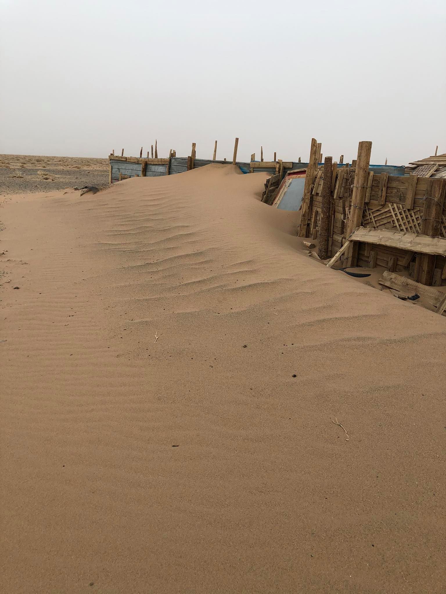 Баянхонгор аймагт сумын төвийн айлын хашаанд хунгарлаж тогтсон элсний нүүдэл. 2021 он