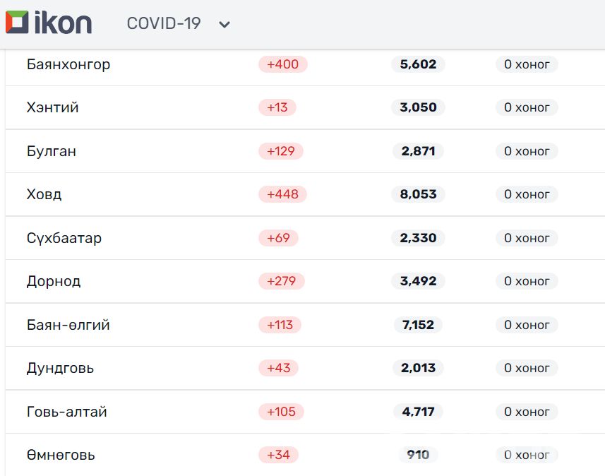 Шинээр илэрсэн халдварын тохиолдлыг аймаг тус бүрээр нь харвал Ховд болон Баянхонгор аймагт хамгийн олон буюу 400-448 хүн шинээр халдвар авчээ.