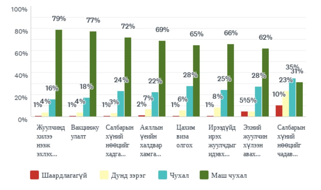 Тиймээс Засгийн газрын зүгээс дараах дэмжлэгүүд хамгийн чухал байгааг судалгаанд хамрагдагчид нэрлэжээ. Үүнд