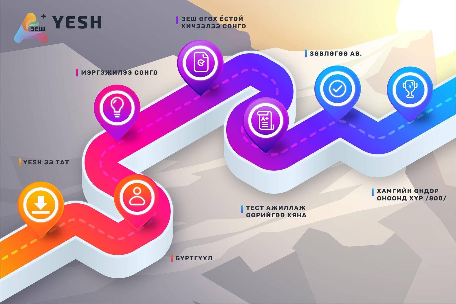 YESH апп бол Боловсролын үнэлгээний төвөөс жил бүр батлагдан гардаг блюпринт агуулгын дагуу боловсруулагдсан тестийн сантай, өөрийн сонгосон мэргэжлийн онцлог, манай улсын урдаа барьдаг шилдэг их, дээд сургуулиудын танилцуулга, тэдэнд хамаарах тэтгэлэгт хөтөлбөрүүд, өдөр тутмын хичээлүүдэд хэрэглэгддэг онол, томьёо, теоромууд бүгд багтсан апп юм. YESH аппликейшн нь “ХҮҮХЭД БҮРТ ТЭГШ БОЛОМЖИЙГ ОЛГОХ” уриатайгаар энэ хичээлийн жилээс та нарт хүрэхэд бэлэн болоод хагас жилийн хөгжүүлэлтийг тасралтгүй хийгээд үр дүнгээ үзчихсэн маш туршлагатай цогц хөтөлбөр гэж хэлж болно.