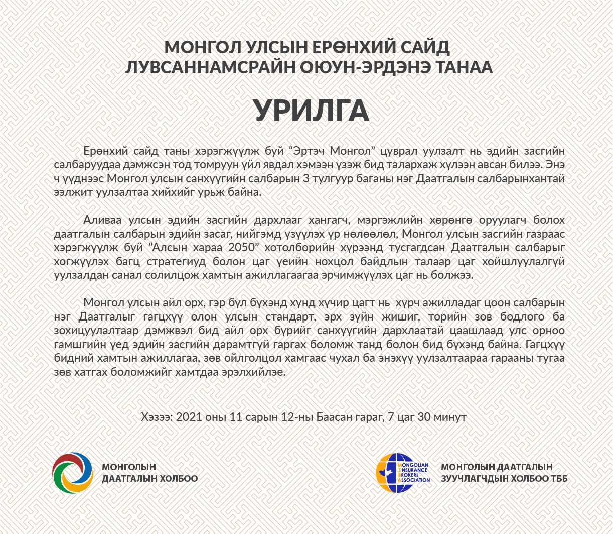 УРИЛГА: Монгол Улсын Ерөнхий Сайд Лувсаннамсрайн Оюун-эрдэнэ ТАНАА