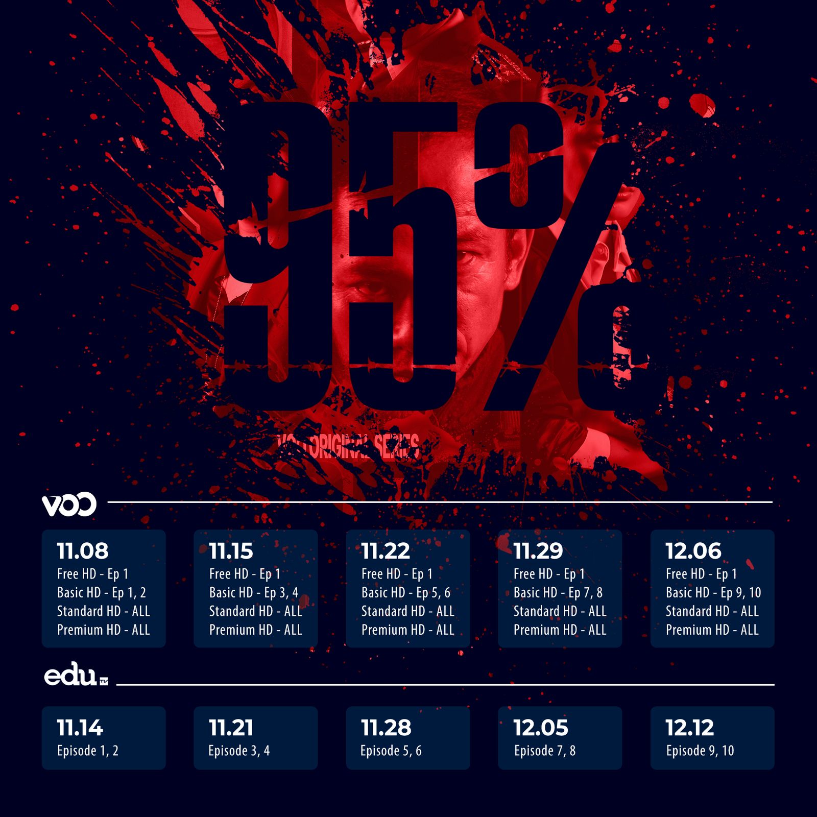 VOO original, Absolute Pictures-ийн бүтээл 95% олон ангит кино 11/08-наас VOO апп, 11/12-ноос Боловсрол сувгаар гарч эхэлсэн. Найруулагч П.Дэлгэрбаярын бүтээл, триллер, гэмт хэргийн жанрын энэхүү бүтээл гарсан цагаасаа хойш үзэгчдийн таашаалд нийцэж, фэнүүд нь яагаад заавал энэ киног үзэх ёстой 5 шалтгааныг жагсаажээ.
