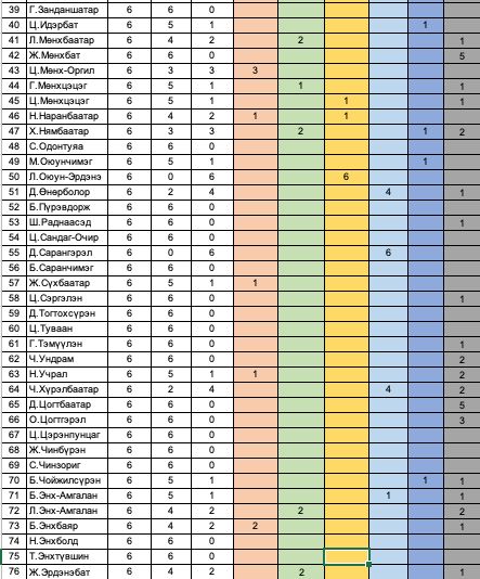 Энэ сард Ц.Анандбазар, Ж.Эрдэнэбат нар 10 удаагийн хоцролтоор тэргүүлж байгаа бол тэдний араас Ж.Мөнхбат, Н.Учрал нарын гишүүд есөн хоцролтоор удаалжээ.
