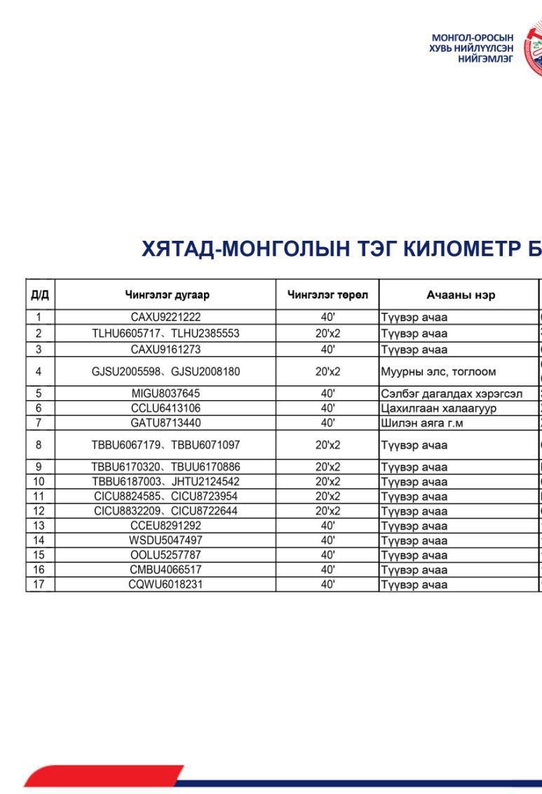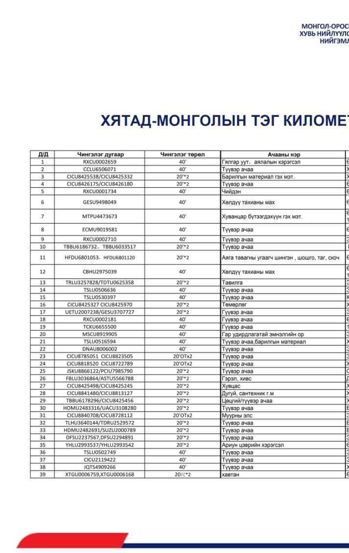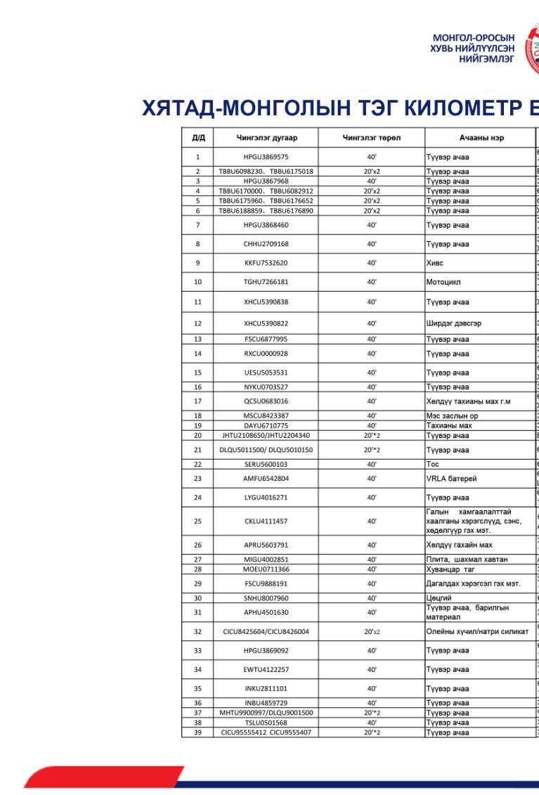 Хилийн 0 цэгээс татан авсан ачаа барааны жагсаалт: Дэлгэрэнгүйг ЭНД дарж үзнэ үү