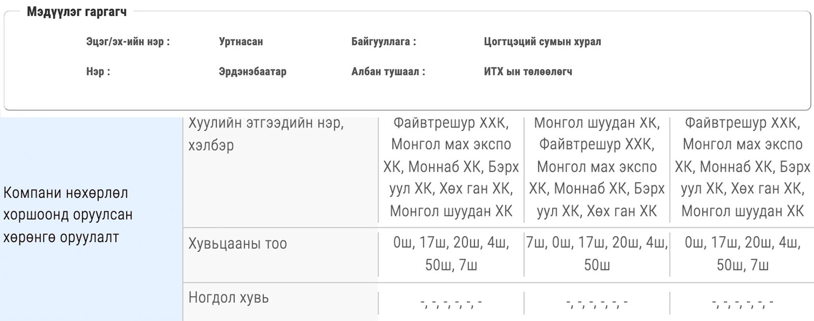 Мөн Монгол мах экспо ХХК-ийн цөөн тооны хувьцаа эзэмшдэг болохоо хоёр ч албан тушаалтан мэдүүлж байж. Тодруулбал,
