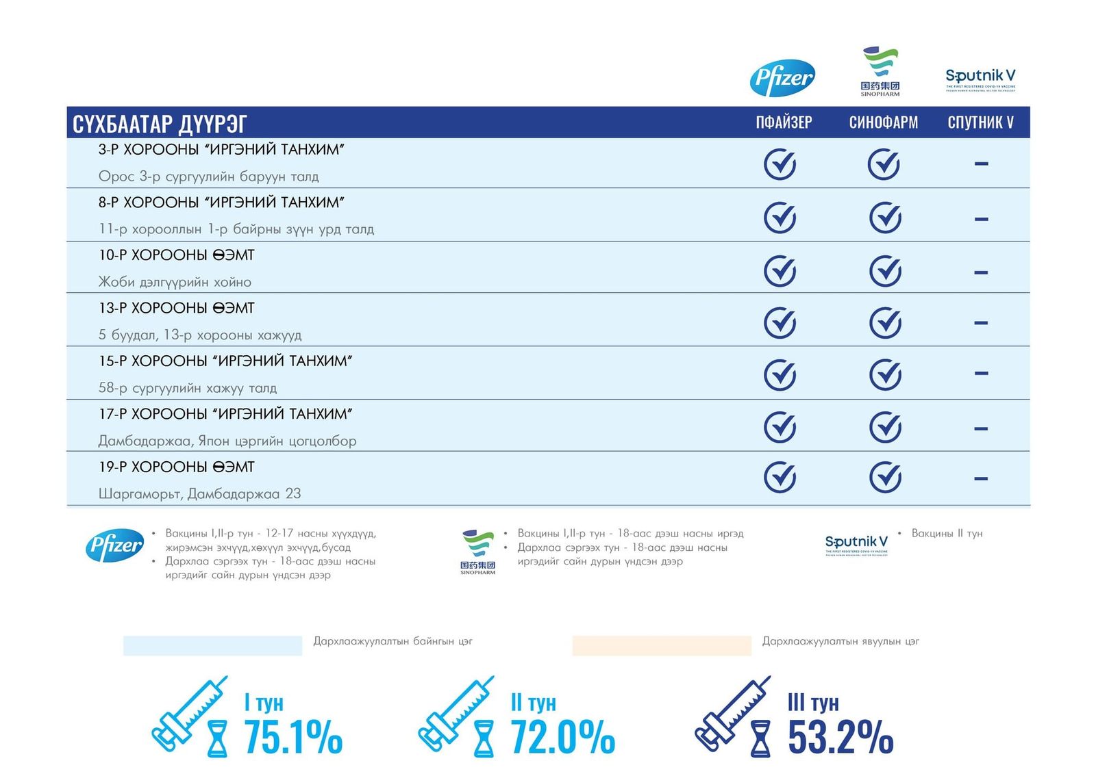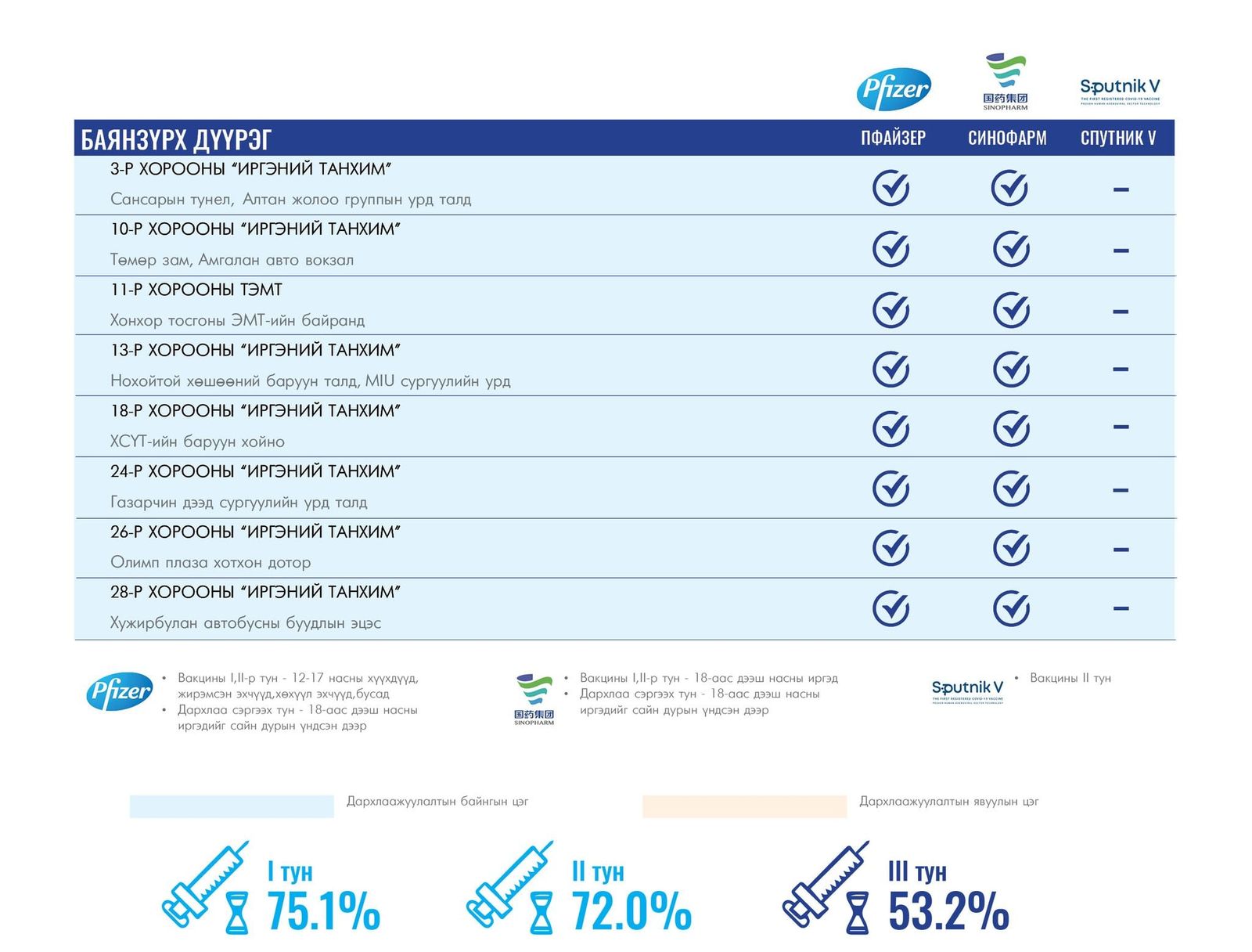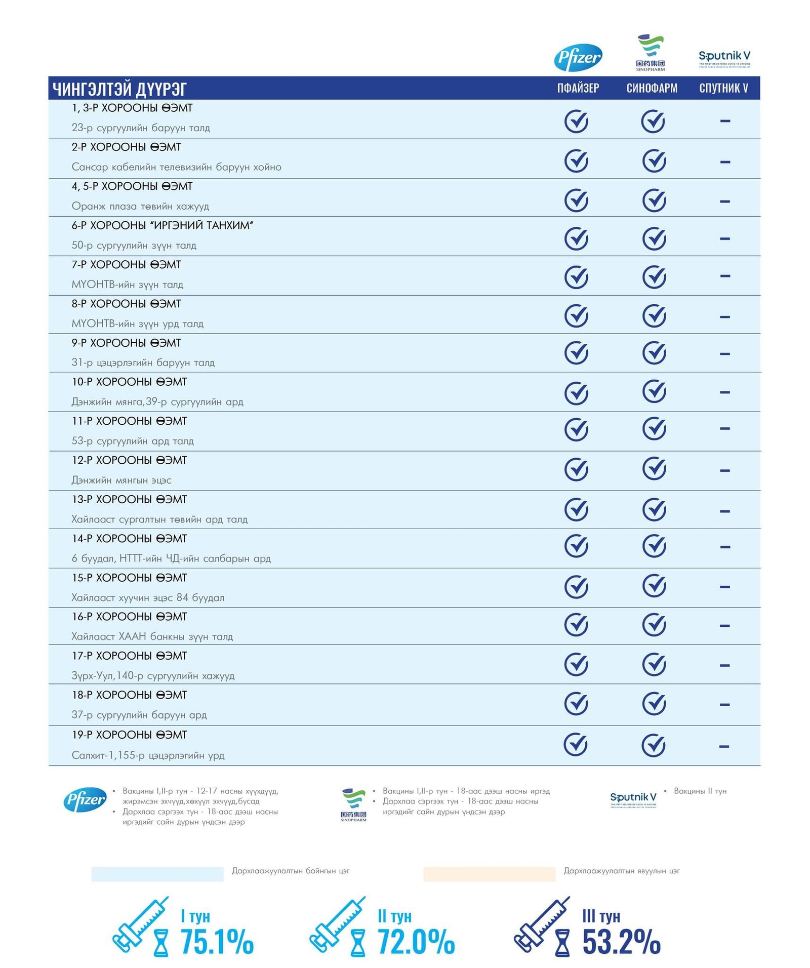 Та өөрт ойр вакцины аль ч цэгт очиж коронавирусийн эсрэг дархлаажуулалтад хамрагдах боломжтой.