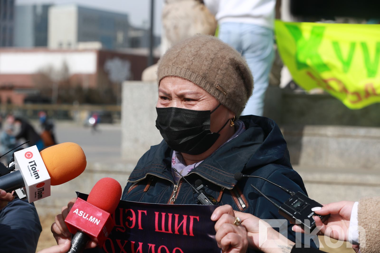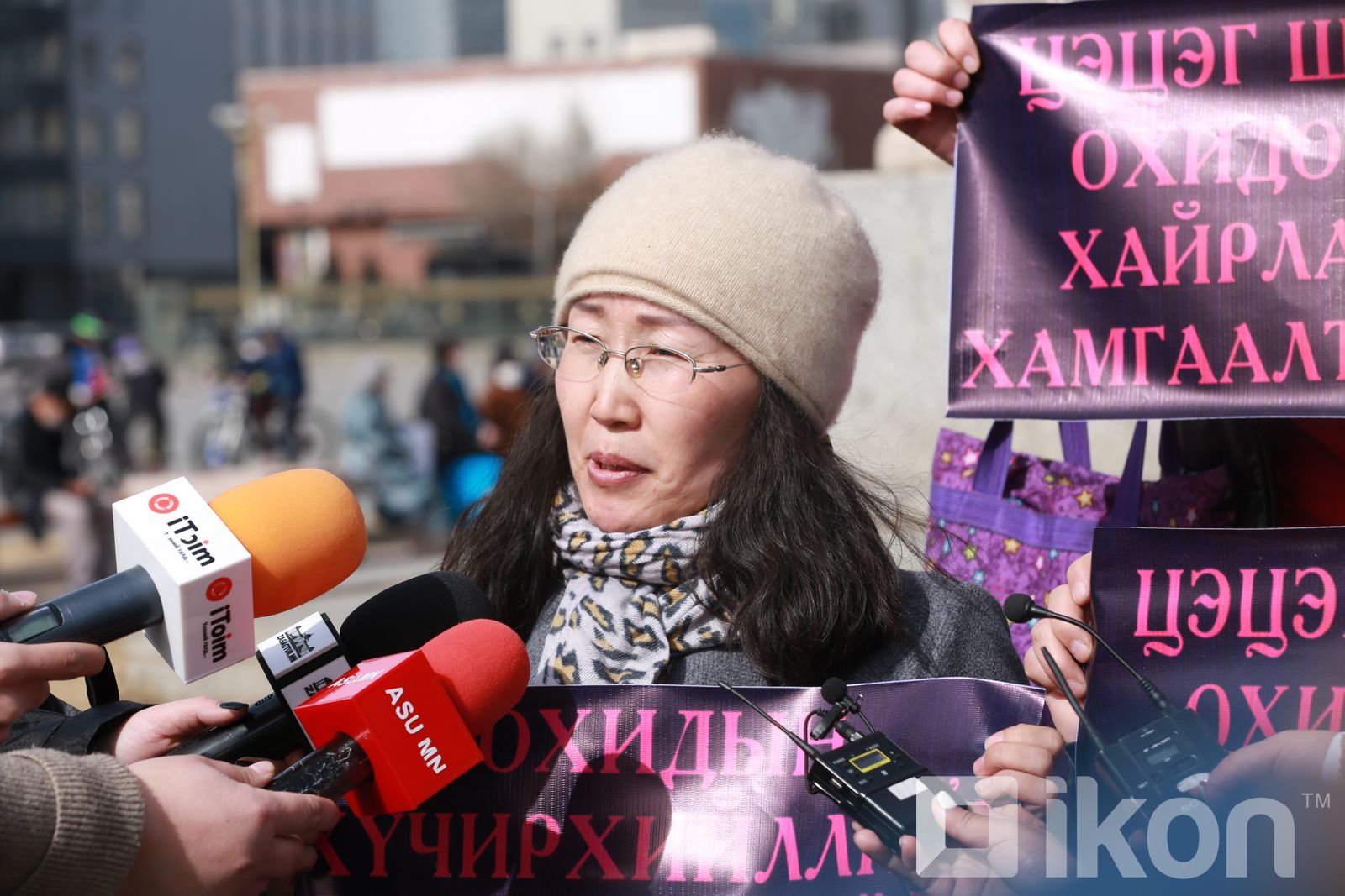 Хүчирхийллийн гэмт хэргийн 70-80 хувь нь цааш эрүүгийн хэрэг үүсээд явж байхад зарим нь гомдолгүй гээд хэргийг нь буцааж байна. Учир нь ойр дотнынх нь хүмүүс байгаа юм. Гэр бүлийн салалтаас үүдсэн асуудал болон хүүхдээ айлд үлдээх зэрэг асуудлаас энэ төрлийн гэмт хэрэг үйлдэгдэх тохиолдол гарч байна” хэмээн жагсаал оролцогчид ярьж байлаа.