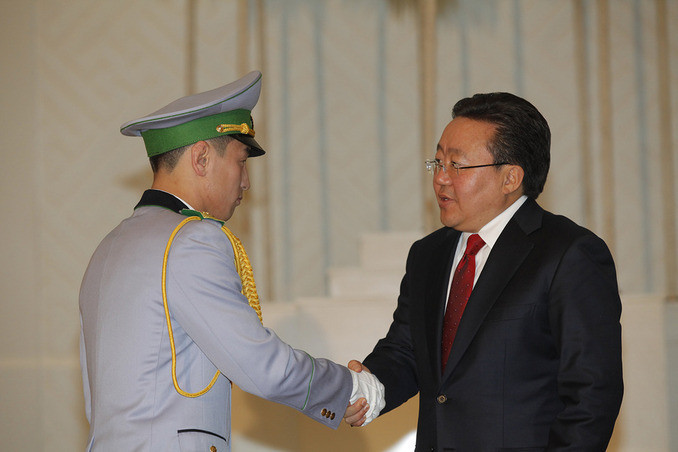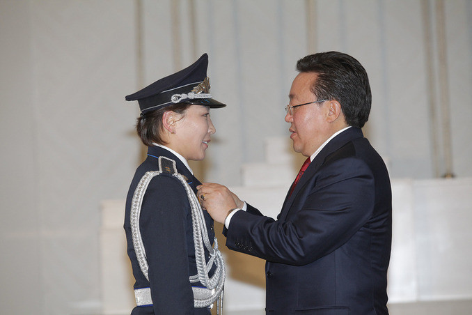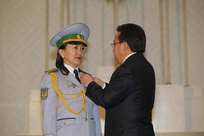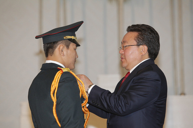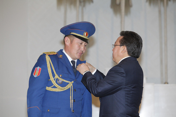 ОБЕГ-ын Аврах тусгай ангийн Аврах багаж, хэрэгслийн техникч, ахлах ахлагч Бүжийнэгийн Цэрэнчимэдийг тус тус шагнаж, Монгол Улсын Ерөнхийлөгч шагналыг гардуулан өглөө.