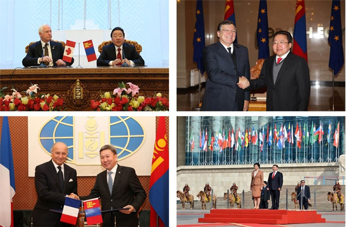 Энэ жил хоёр талын болон олон улсын нийт 63 баримт бичиг, гэрээг байгуулав. Европын Холбоотой “Түншлэл, хамтын ажиллагааны хэлэлцээр”, АНУ-тай “Олон улсын худалдаа, хөрөнгө оруулалтын асуудлаар ил тод байдлыг хангах тухай хэлэлцээр”, Японтой “Стратегийн түншлэлийн дунд хугацааны хөтөлбөр” Хятадтай “Стратегийн түншлэлийг хөгжүүлэх дунд, урт хугацааны хөтөлбөр” байгуулсан нь түүхэн чухал үйл явдлууд байв.
