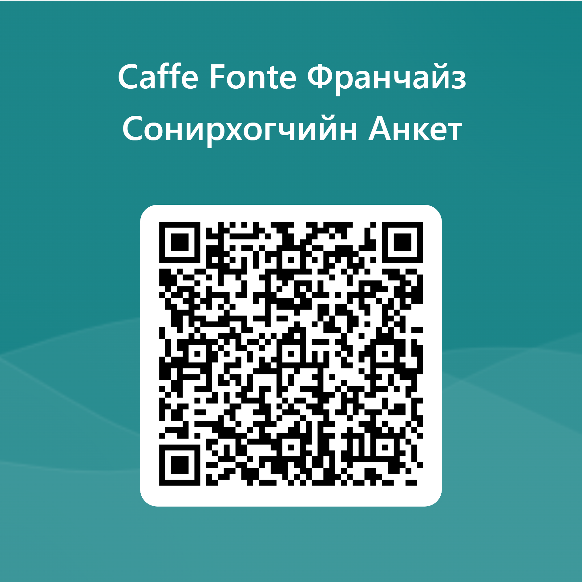 Caffe Fonte кофе шопын франчайзын талаар мэдээлэл авахыг хүсвэл дараах QR кодыг уншуулна уу: