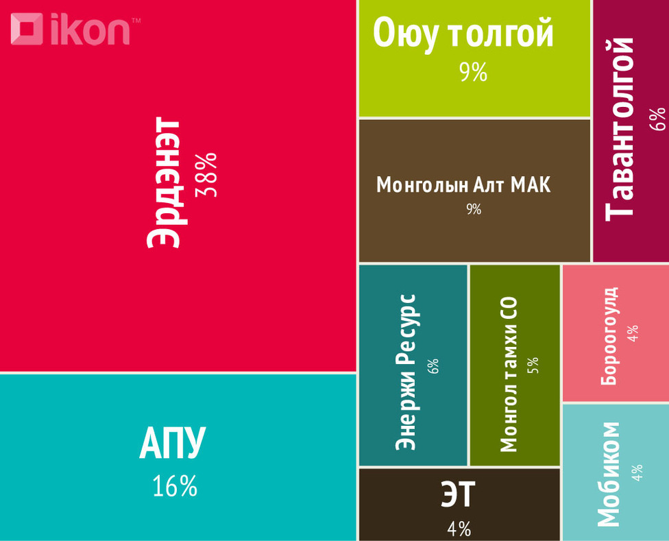 | 1 | Эрдэнэт Үйлдвэр ХХК | 362.9 | 38% |