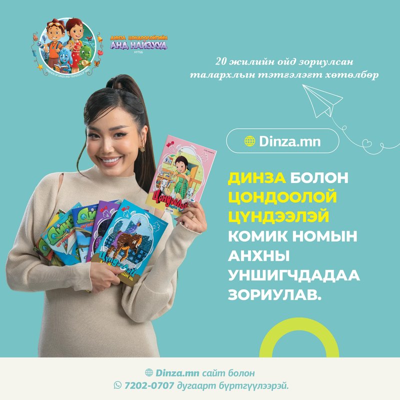 Мөн Монгол хүүхэд бүрийн хайртай Динза болон Цондоолой Цүндээлэй комик ном үргэлжлэх бөгөөд Динза комик дараагийн цувралаас дэлхийн түүх шинжлэх ухааны ололт амжилттай танилцаж, академик мэдлэгийг хүүхдүүдэд олгох сонирхолтой адал явдлаар үргэлжлэх юм.