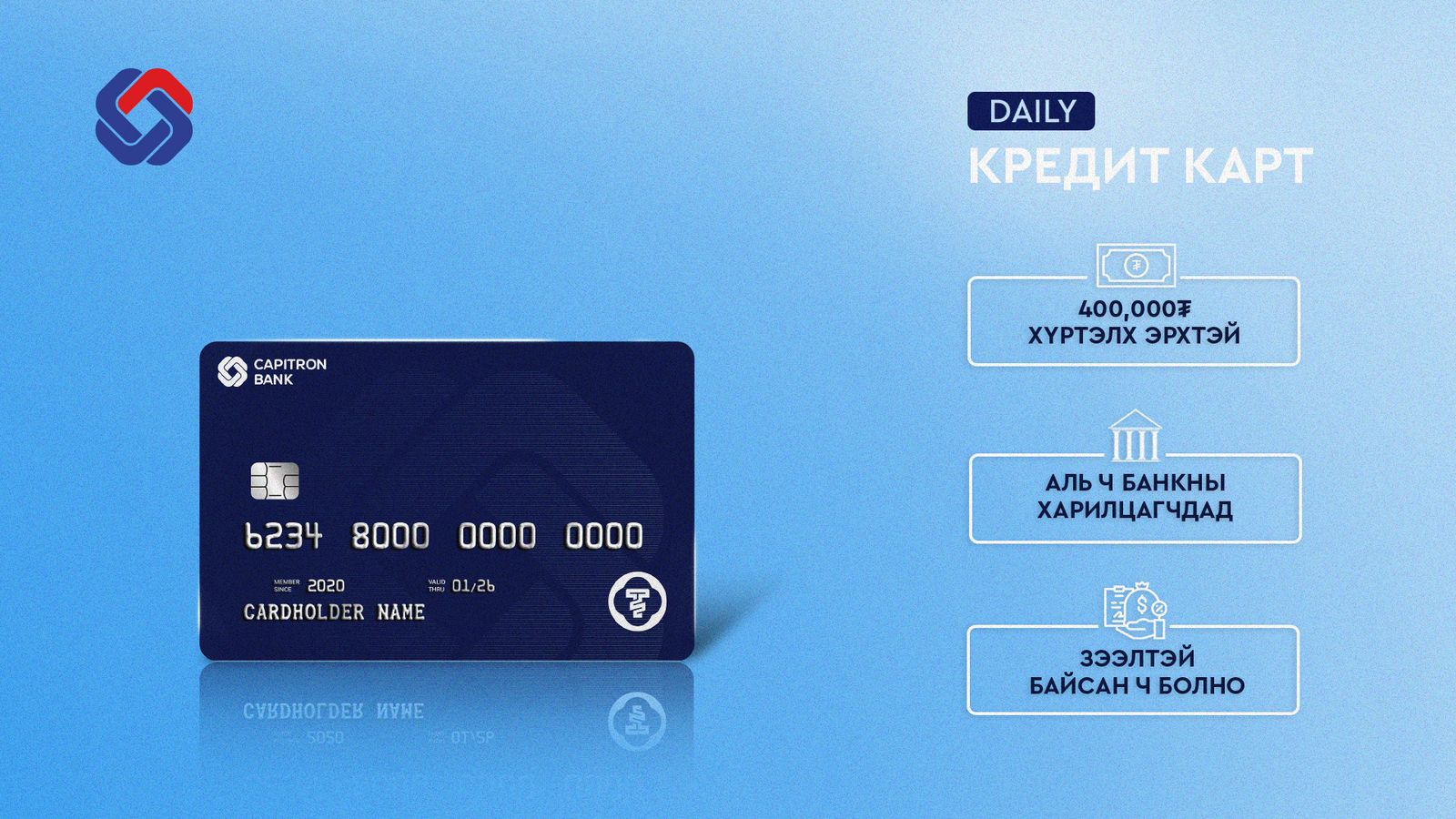 Капитрон банкнаас иргэдийн амьдралын хэв маяг, санхүүгийн өдөр тутмын хэрэгцээнд нийцүүлэн 100,000-400,000₮ хүртэлх эрхтэй “Daily” кредит төгрөгийн картыг зах зээлд нэвтрүүллээ.