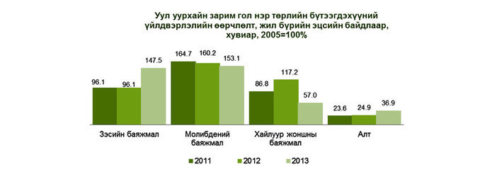-Нийт нутгийн 0.6 хувь ашиглалтын тусгай зөвшөөрөлтэй, есөн хувь нь хайгуулын лицензтэй. Үүнээс 0.2 хувь нь идэвхтэй ашиглагддаг.