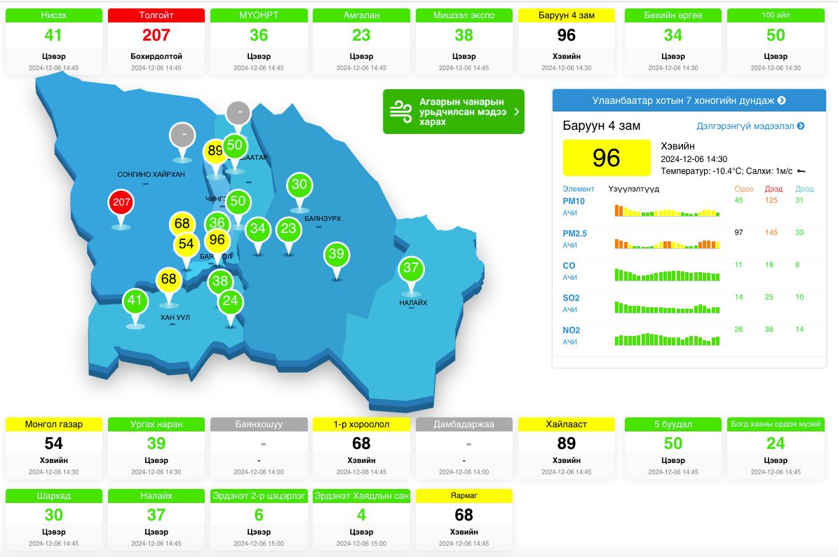 Мөн Ikon.mn сайтын нүүр хуудасны толгой хэсэгт байршиж буй УБ агаарын чанар хэсгээс тухайн өдрийн агаарын чанарын индексийг харах боломжтой.