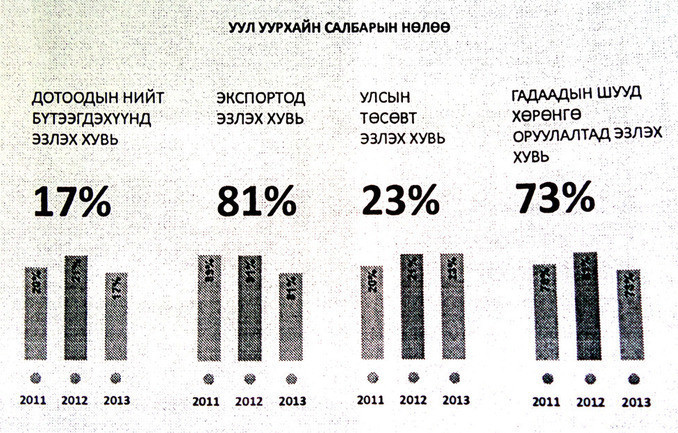 Салбарын сайдын илтгэлээс голлох ашигт малтмалын байр сууриараа Монгол Улс хаана байгааг тодхон харахаар байв. Эндээс үзэхэд манай улс алт, зэс, нүүрсээрээ дэлхийн хэмжээнд эхний аравт багтжээ.