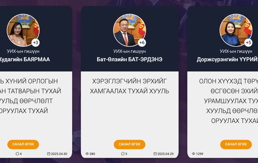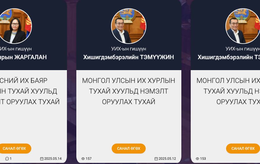 Гэхдээ УИХ-ын гишүүн Ц.Мөнхтуяагийн 2025 оны хоёрдугаар сарын 26-ны өдөр байршуулсан Боловсролын ерөнхий хуульд нэмэлт өөрчлөлт оруулах хуулийн төслийг 8,434 удаа нээж үзсэн боловч ердөө наймхан сэтгэгдэлтэйгээр удаалжээ.