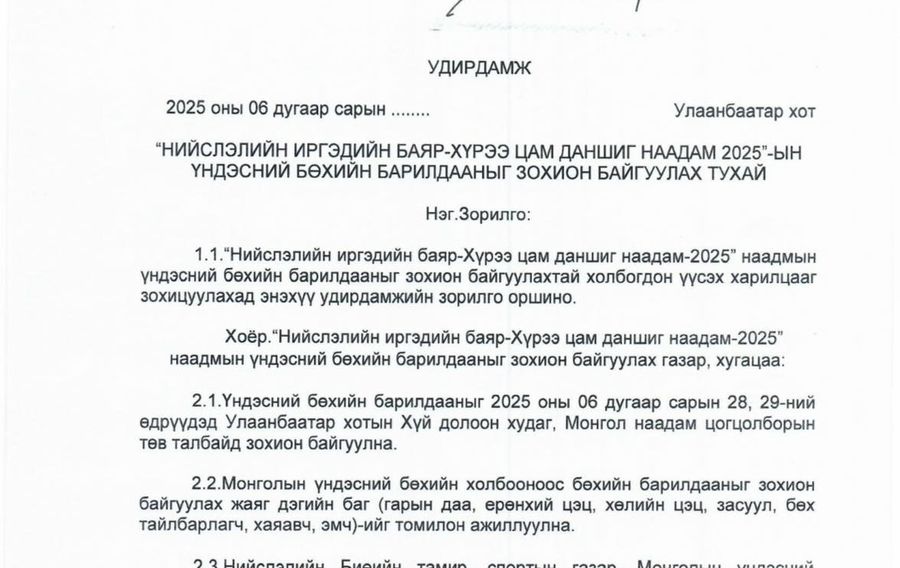 Нийслэлийн иргэдийн анхны баяр “Хүрээ цам-Даншиг наадам 2025" энэ сарын 28, 29-нд Хүй долоо худагт болно.