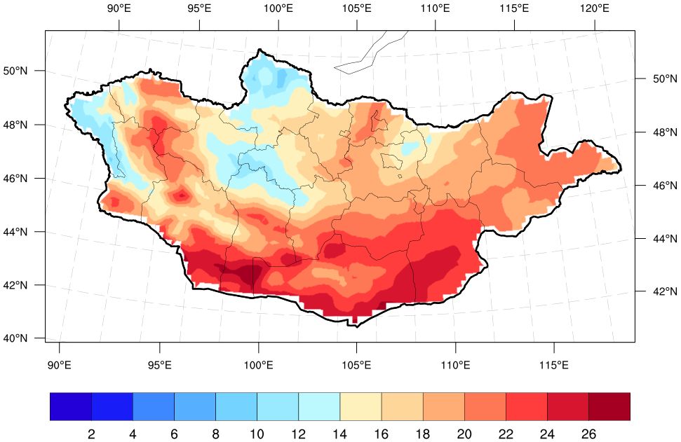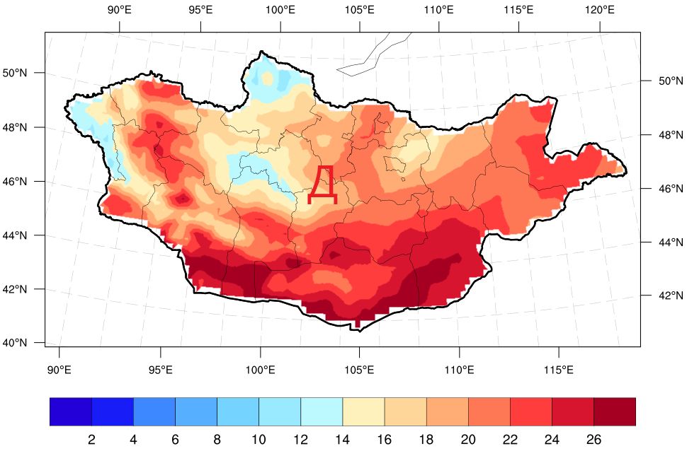 2025 оны 7–р сарын агаарын дундаж температурын урьдчилсан төлөв