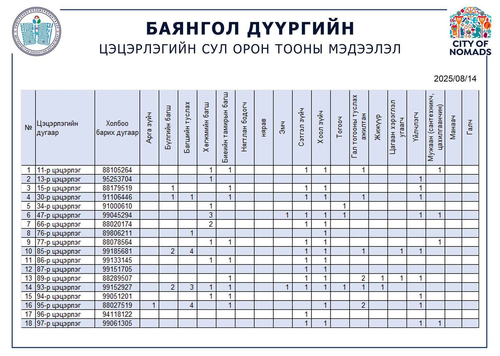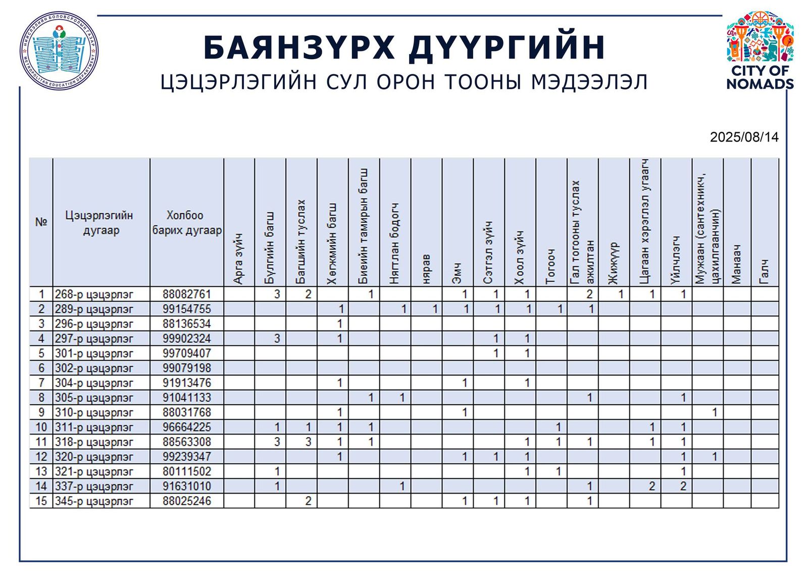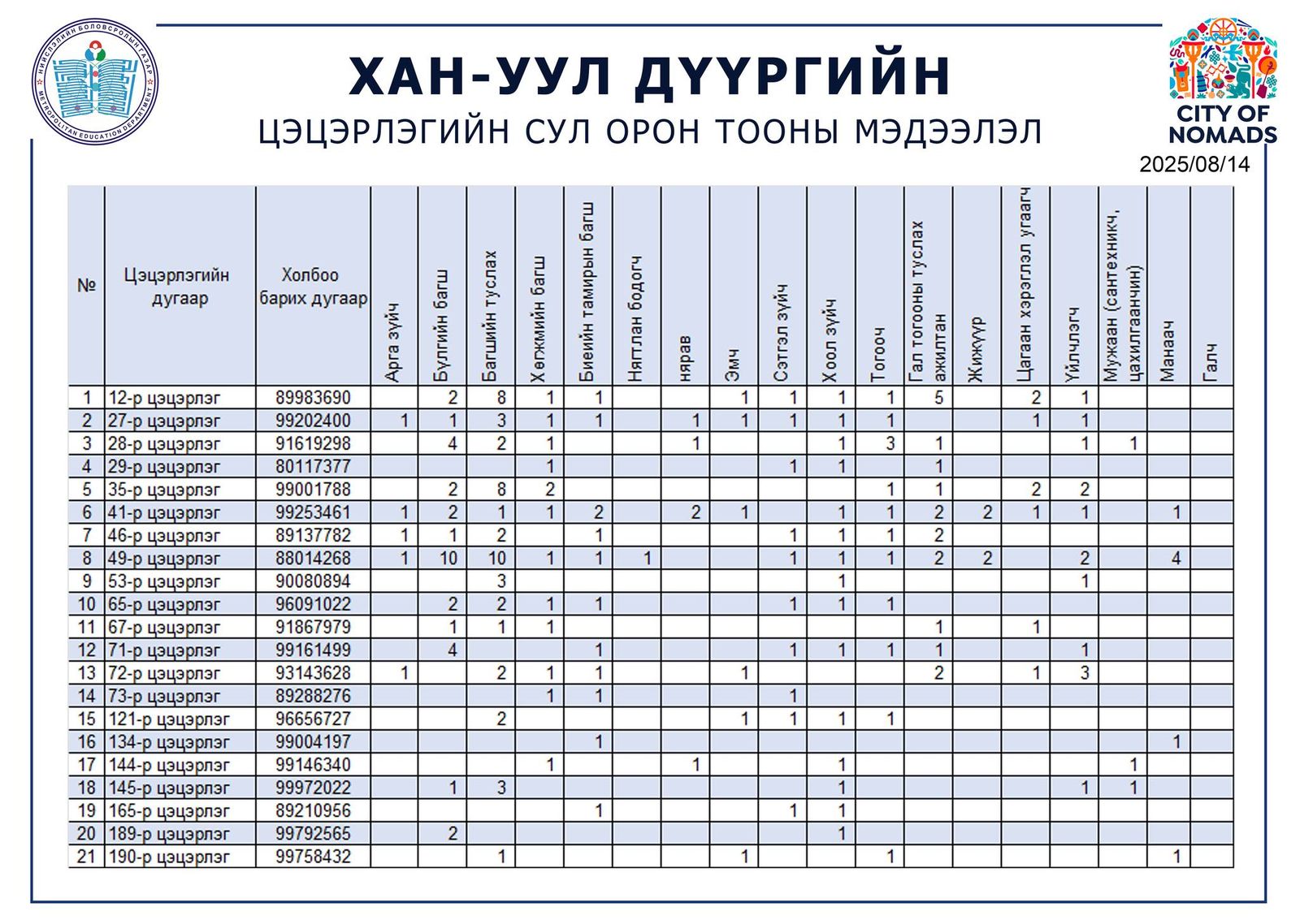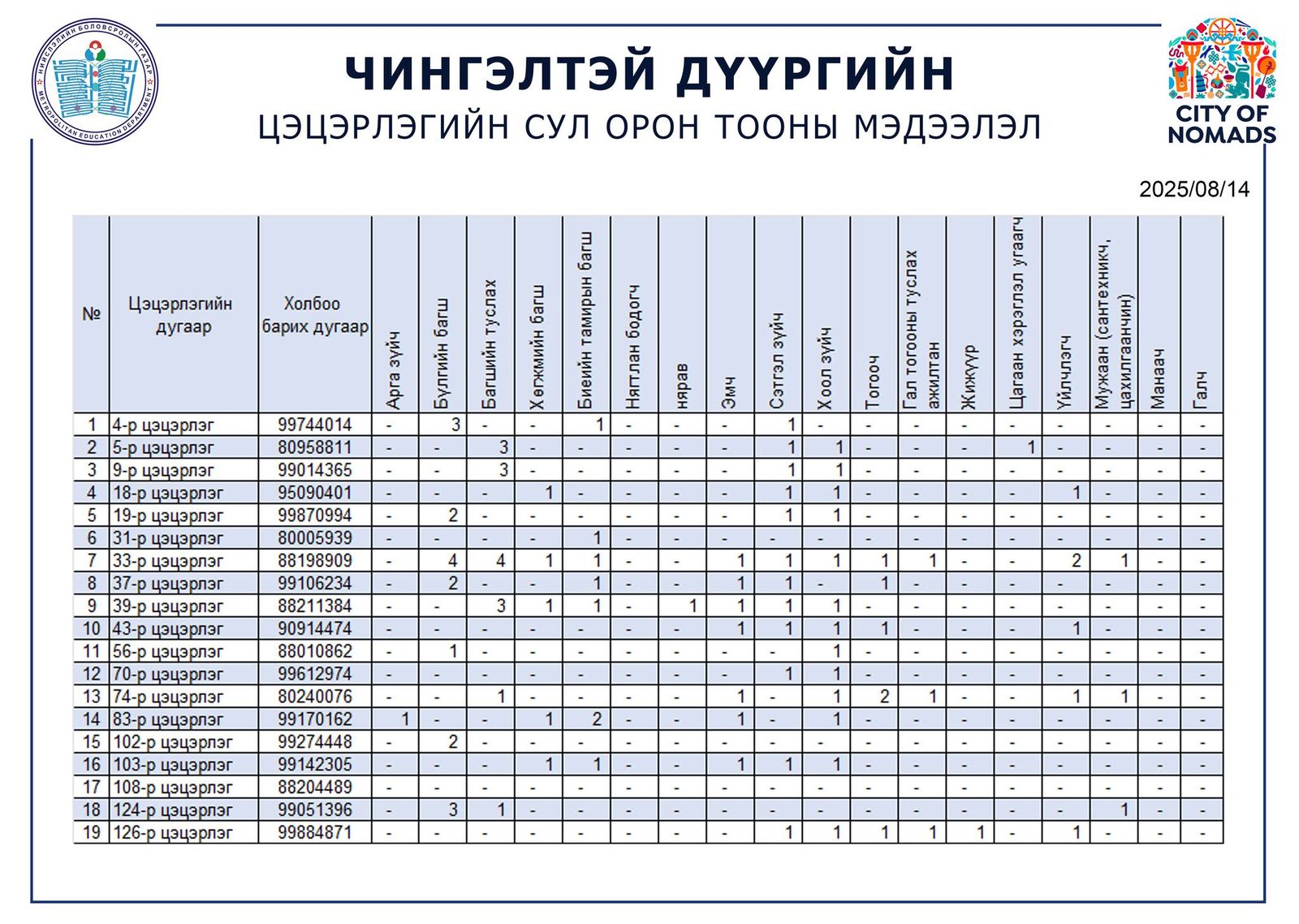 2025-2026 оны хичээлийн жилд нийслэлийн хүүхдийн цэцэрлэгүүдэд дутагдаж буй багш, ажилтны сул орон тооны мэдээллийг Нийслэлийн боловсролын газраас мэдээллээ.