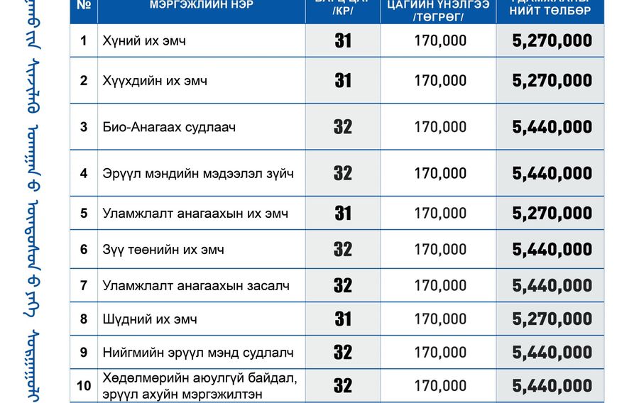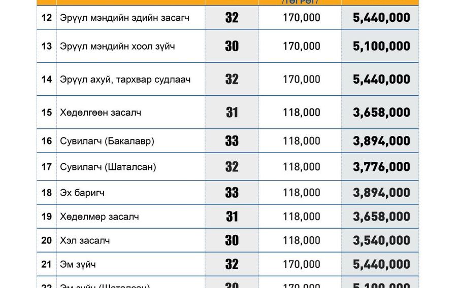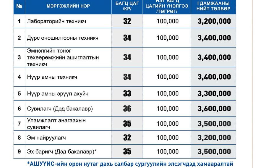 Харин энэ жилийн хувьд тус мэргэжлээр элссэн оюутны 1 кредитийн төлбөр 170,000 төгрөг буюу жилийн сургалтын төлбөр 5.2 сая төгрөг болсон байна. АШУҮИС-ийн бакалаврын хөтөлбөрт шинээр элсэгчийн 1 кредитийн төлбөр 25-40 мянган төгрөгөөр нэмэгдсэн аж.
