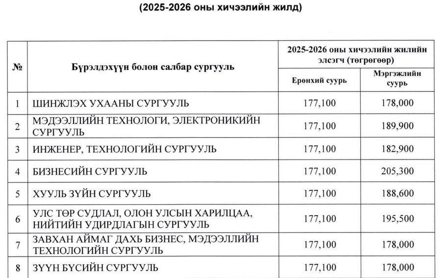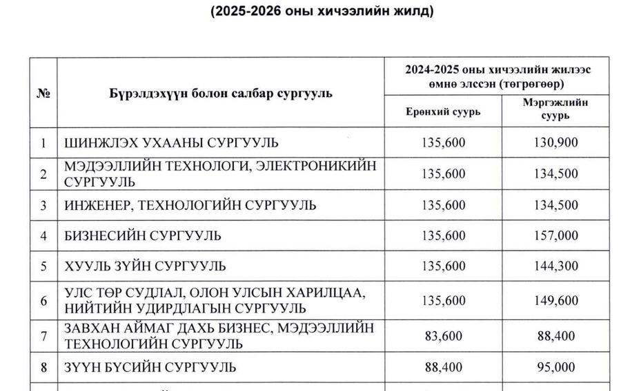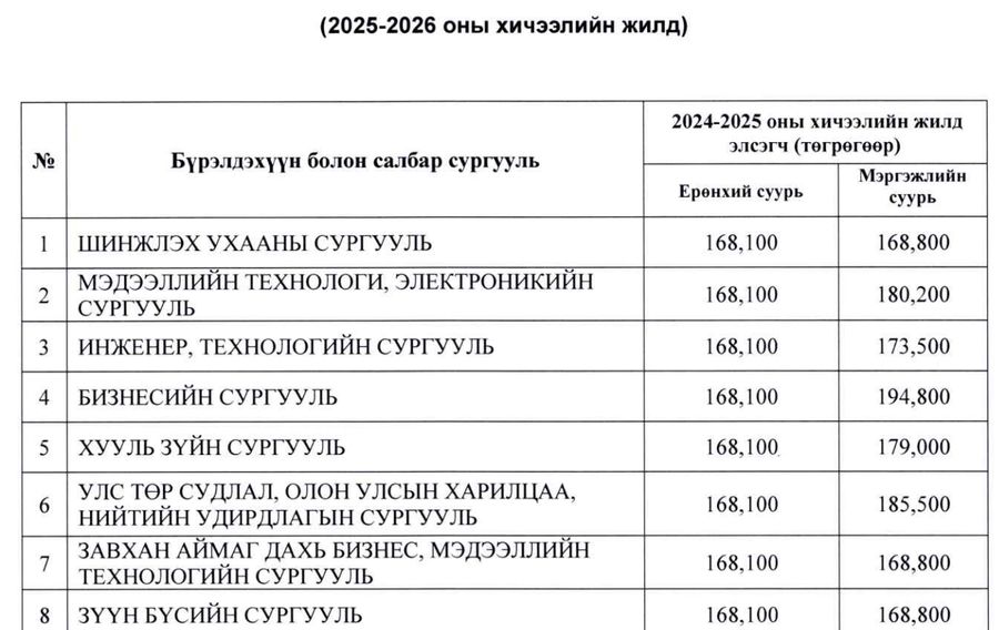 2025-2026 оны хичээлийн жилийн их сургуулиудын хичээл сонголт эхлэхийн өмнөх нь шинээр элсэж буй суралцагчдын сургалтын төлбөрийн нэмэгдэл олны анхаарал татаад байна.