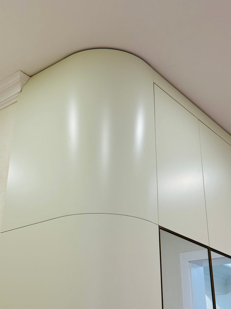 Захиалгын тавилгад хамгийн чухал зүйлийн нэг нь ирмэг хуулганы наалт байдаг ба хэр цэвэрхэн наасан эсэхээс хүний сэтгэл ханамж мөн тавилгын наслалтад чухал үүрэг гүйцэтгэдэг. Манай үйлдвэр 14м урт хуулга наах автомат машинтай. Мөн ижил урттай конвэйртэй. Энэ нь ажилтныг хүнд хавтан өргөхөөс чөлөөлдөг ба тэр хэмжээгээр алдааг арилгадаг.