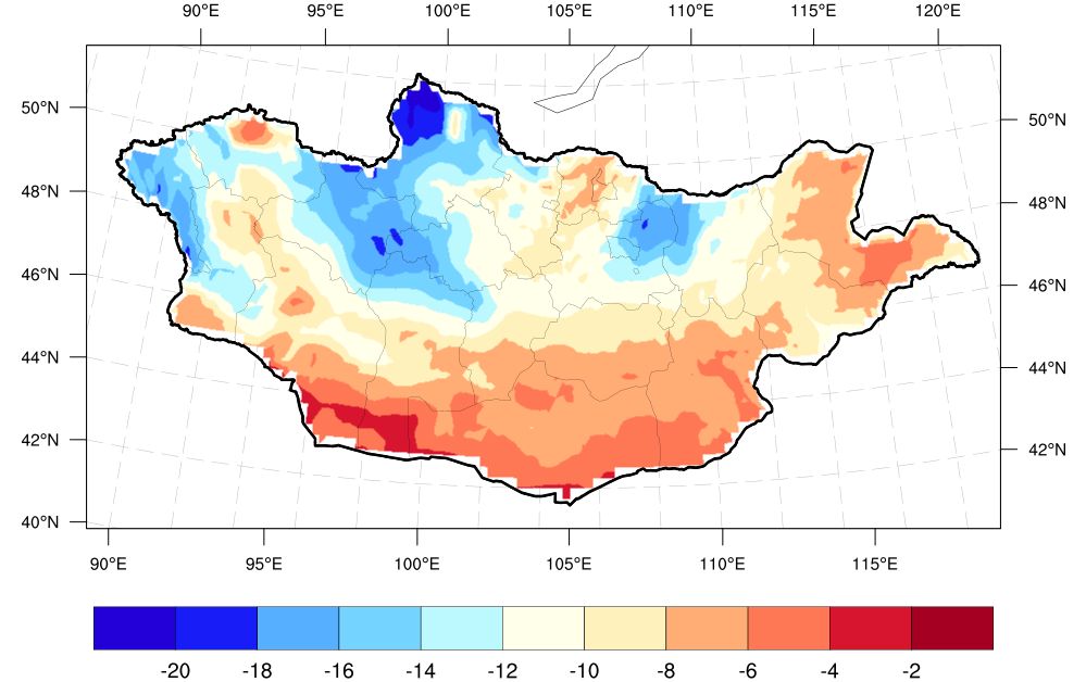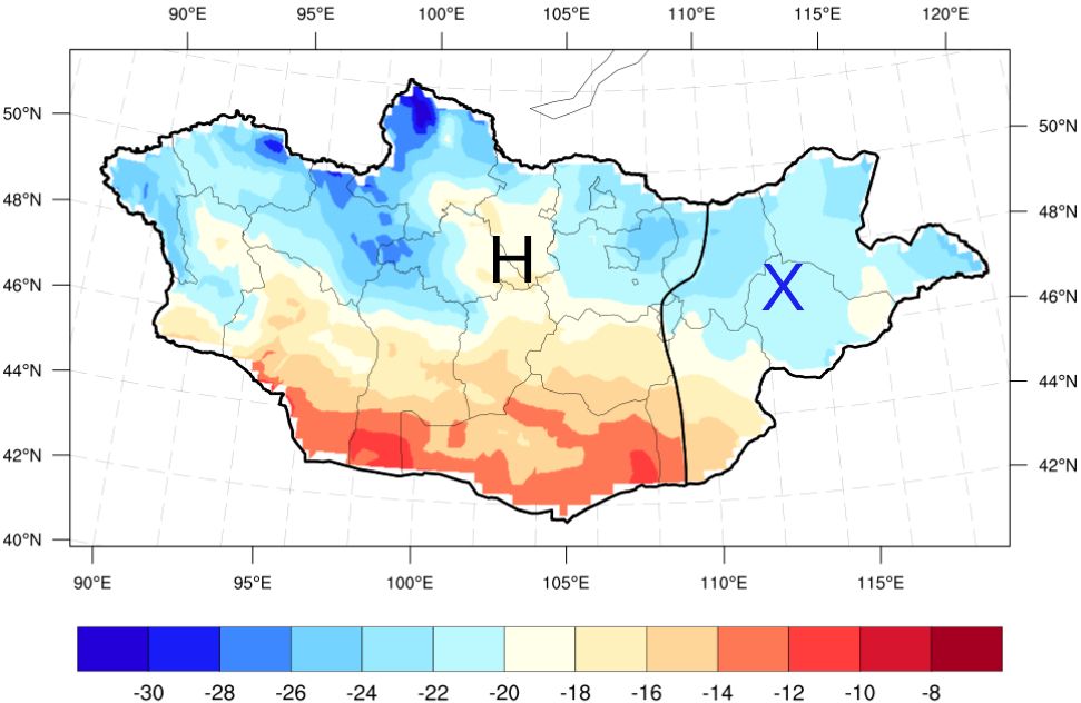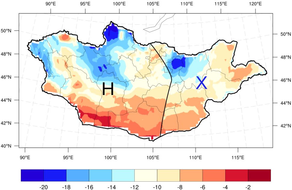 2025.12-р сар агаарын температур: Агаарын дундаж температур Хэнтий, Дорноговийн ихэнх хэсэг болон Дорнод, Сүхбаатар, Говьсүмбэрийн нутгаар ОЖД–аас хүйтэн, бусад нутгаар дунджийн орчим байх төлөвтэй байна.