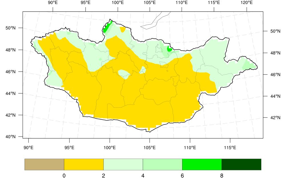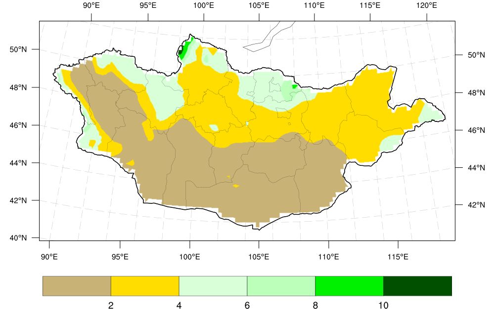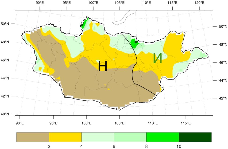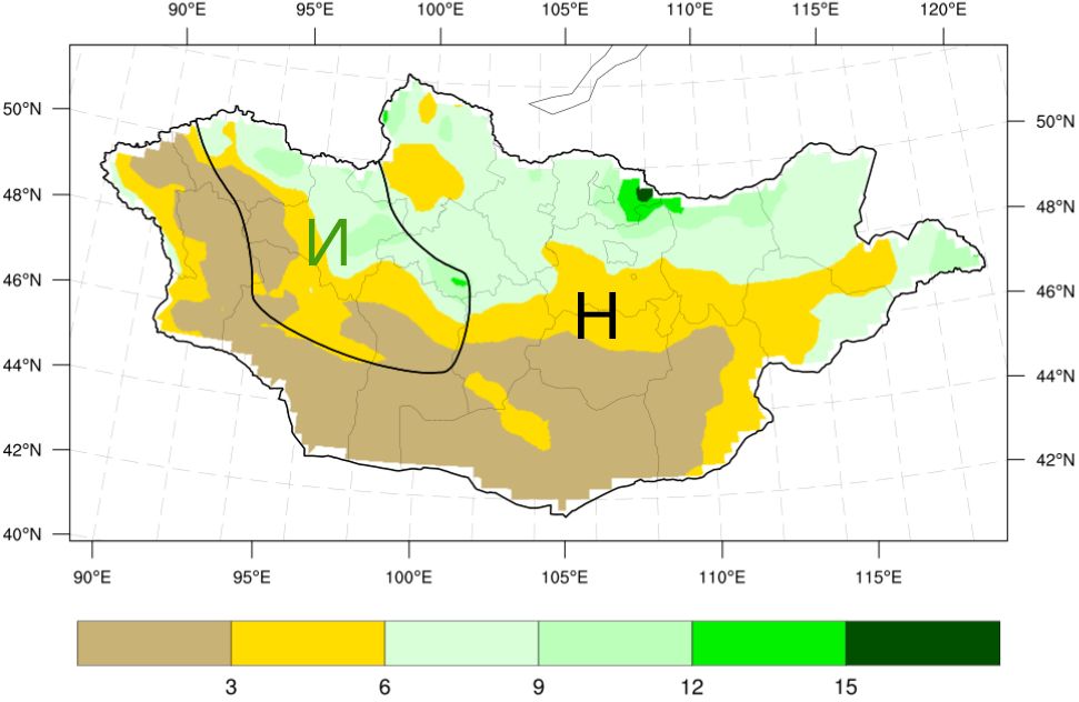 2025.10-р сард хур тунадас: Сарын нийлбэр хур тунадас Увс, Завханы ихэнх, Говь–Алтай, Баянхонгорын хойд, Архангайн баруун хэсгээр ОЖД–аас ахиу, бусад нутгаар дунджийн орчим байх төлөвтэй байна.