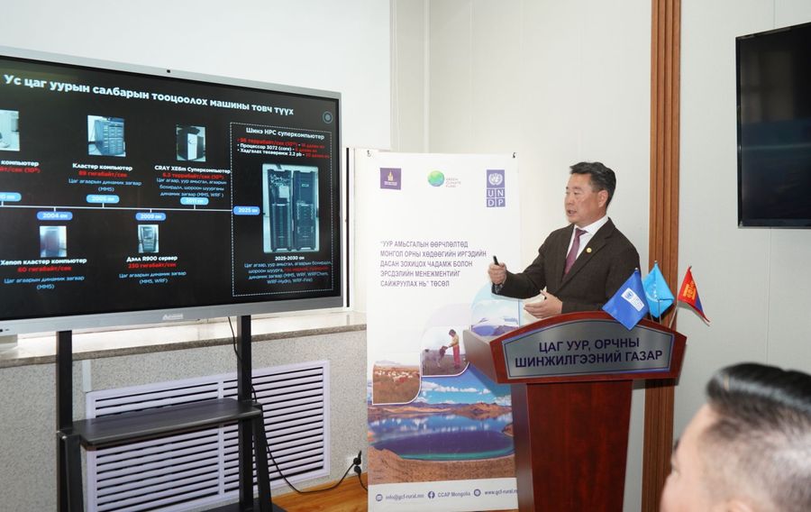 Мөн уг төслийн хүрээнд цаашид ЦУОШГ-ын мэргэжилтнүүдэд зориулсан уур амьсгалын өөрчлөлтийн судалгаа хийх, урьдчилсан мэдээ боловсруулах (WRF) загвар, арга технологи, загвар ашиглах болон боловсруулалт хийх аргуудын талаар сургалтыг үе шаттай зохион байгуулж, супер компьютер ашиглахтай холбоотой чадавхыг бэхжүүлж байна.
