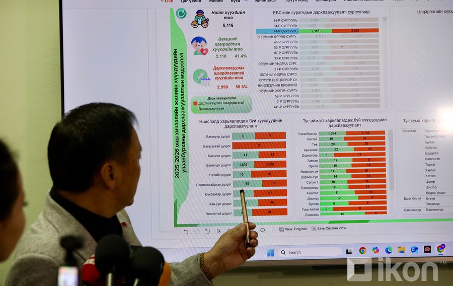 Тухайлбал БЗД-ийн 16-р хороонд нийт 5,358 хүүхэд байдгаас Улаанбурханы эсрэг вакцин хийлгээгүй хүүхдийн тоо 854 байна. Гүйцэд тунгаа хийлгүүлсэн 3,502 байна. Нэг тунтай 1,002 хүүхэд байна. Сургууль цэцэрлэгтээ яваад Улаанбурханы халдвар авах эрсдэлтэй хүүхэд олон байгаа юм байна. Мөн нийслэлийн ЕБС-ийн хүүхдүүдийн Улаанбурханы вакцинд хамрагдалтын мэдээллээс харахад анги бүрд вакцин хийлгүүлээгүй хүүхдүүд байна.