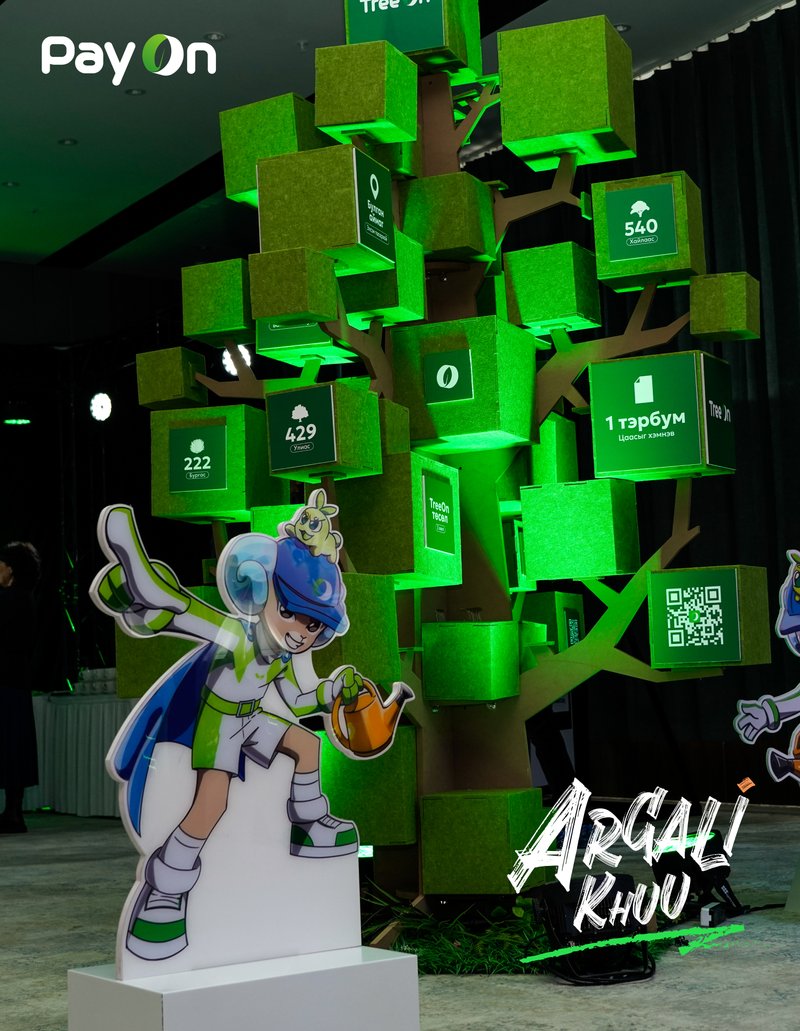 PayOn брэнд нь зөвхөн санхүүгийн ухаалаг шийдэл санал болгоод зогсохгүй, тогтвортой хөгжлийн хүрээнд эх дэлхийгээ хайрлах үйлсийг манлайлан хэрэгжүүл буй TreeOn төсөл ч байдаг. Тус төсөл нь одоогийн байдлаар 123,000 гаруй модыг виртуал орчинд ургуулж, 1500 гаруй модыг биетээр буюу Булган аймгийн Элсэн тасархай, Төв аймгийн Баянхангай сумд тарьж ургуулан арчилсаар байна.