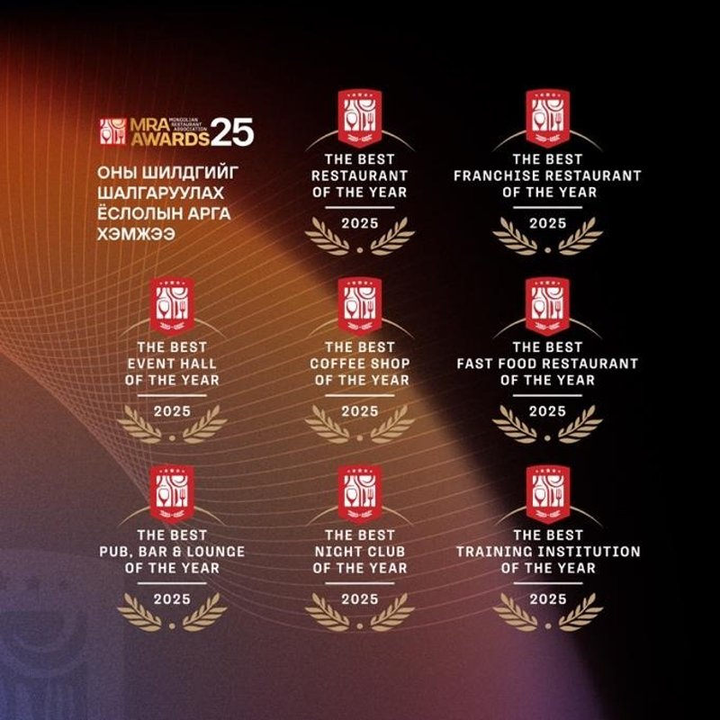 Монголын хоол үйлдвэрлэл, үйлчилгээний (F&B) салбарт үндэсний хэмжээнд анх удаа зохион байгуулж буй салбарын оны шилдгүүдийг тодруулах “Mongolian Restaurants Association Awards 2025” шалгаруулалтын шагнал гардуулах ёслолын арга хэмжээ 2025 оны 12 дугаар сарын 9-ний өдөр зохион байгуулагдана.