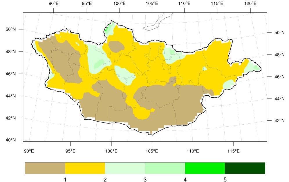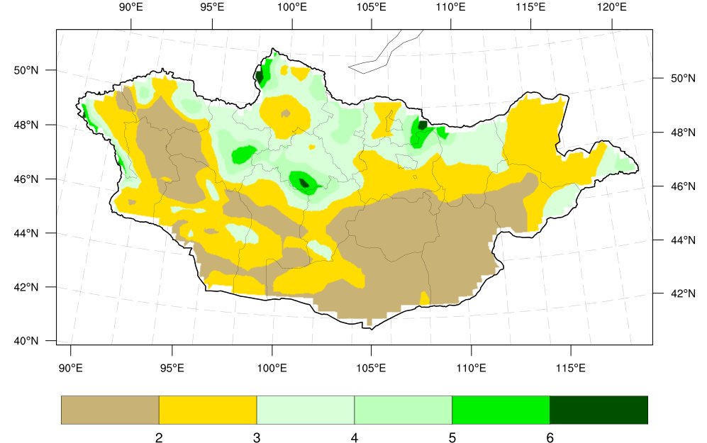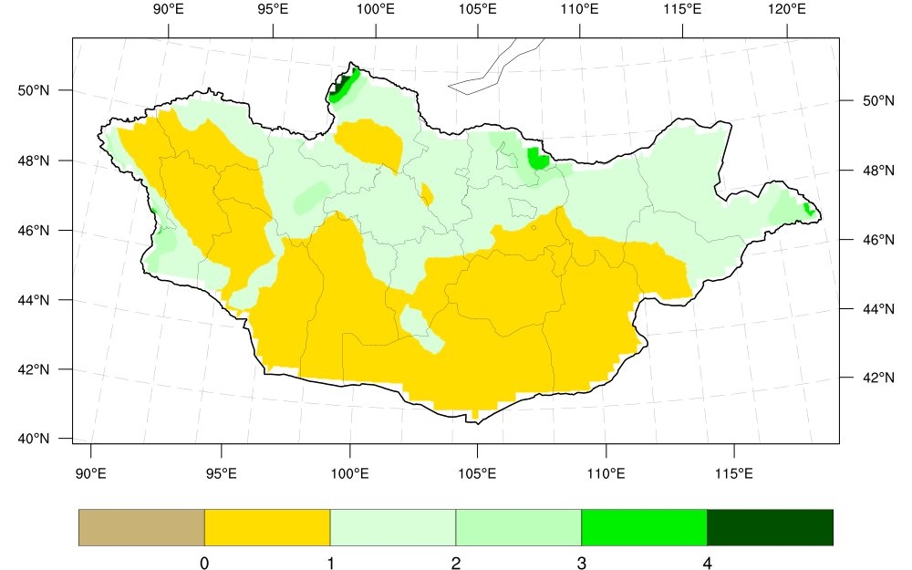 1-р сар агаарын дундаж температурын ОЖД 1-р сарын хур тунадас ОЖД: Хангайн нурууны төгсгөл, Хөвсгөл, Хэнтийн уулархаг нутаг, Дорнодын тал нутгаар 2–4 мм, бусад нутгаар 0–2 мм ордог байна.