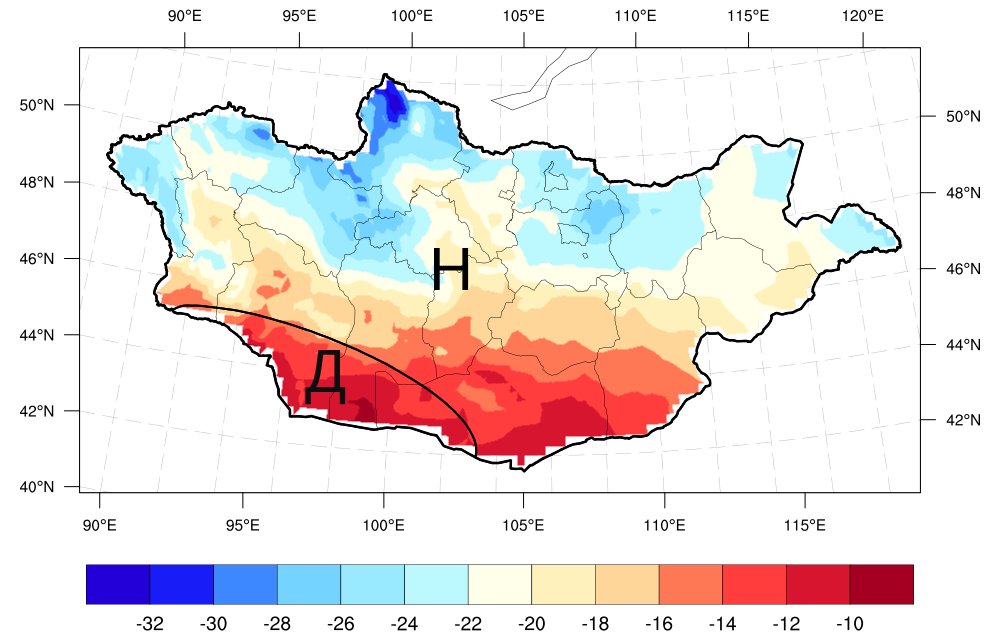 1-р сарын агаарын температурын ОЖД: Баян–Өлгийн нутаг, Увсын хойд болон өмнөд, Завхан, Хөвсгөл, Сэлэнгийн ихэнх, Архангайн баруун, Төвийн зүүн хойд хэсгээр -26…-32°C, Говь–Алтай, Баянхонгор, Дорноговийн өмнөд, Өмнөговийн ихэнх нутгаар -12...-18°C, бусад нутгаар -18...-26°C хүйтэн байдаг байна.