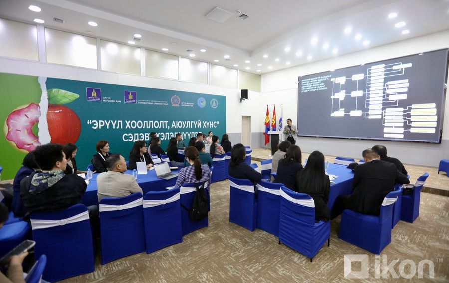 ЭМХТ, НЭМҮТ, БЕГ, Хүнсний эрдэм шинжилгээ, судалгааны хүрээлэн болон Нийслэлийн боловсрол сургуулийн хоол, хүнс үйлдвэрлэгч болон ханган нийлүүлэгч нар өнөөдөр “Эрүүл хооллолт-аюулгүй хүнс” сэдвээр хэлэлцүүлэг хийв.