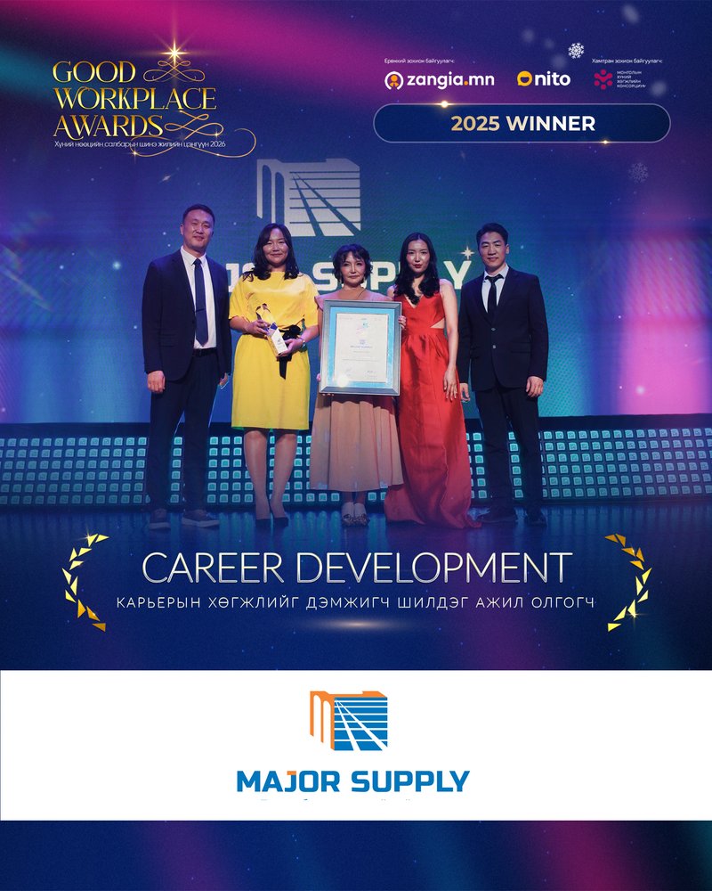 - 𝐂𝐚𝐫𝐞𝐞𝐫 𝐃𝐞𝐯𝐞𝐥𝐨𝐩𝐦𝐞𝐧𝐭 - Карьерын хөгжлийг дэмжигч шилдэг ажил олгогчоор Мэйджор Саплай ХХК
