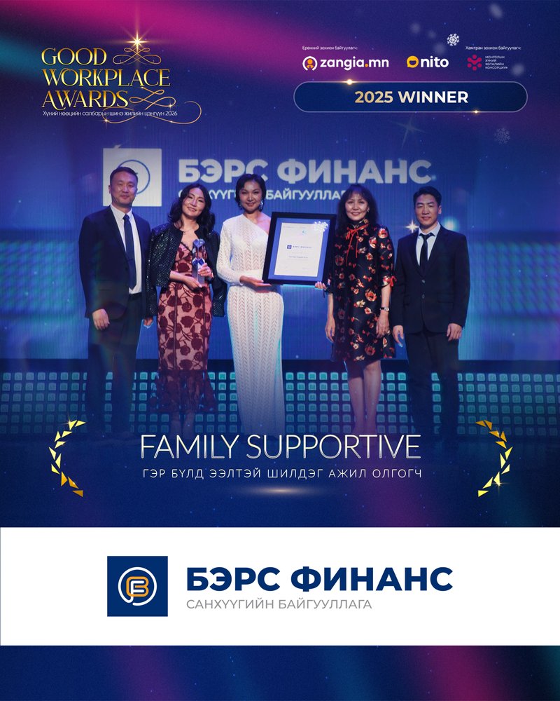 - 𝐅𝐚𝐦𝐢𝐥𝐲 𝐒𝐮𝐩𝐩𝐨𝐫𝐭𝐢𝐯𝐞 - Гэр бүлд ээлтэй шилдэг ажил олгогчоор Бэрс Финанс ББСБ ХХК