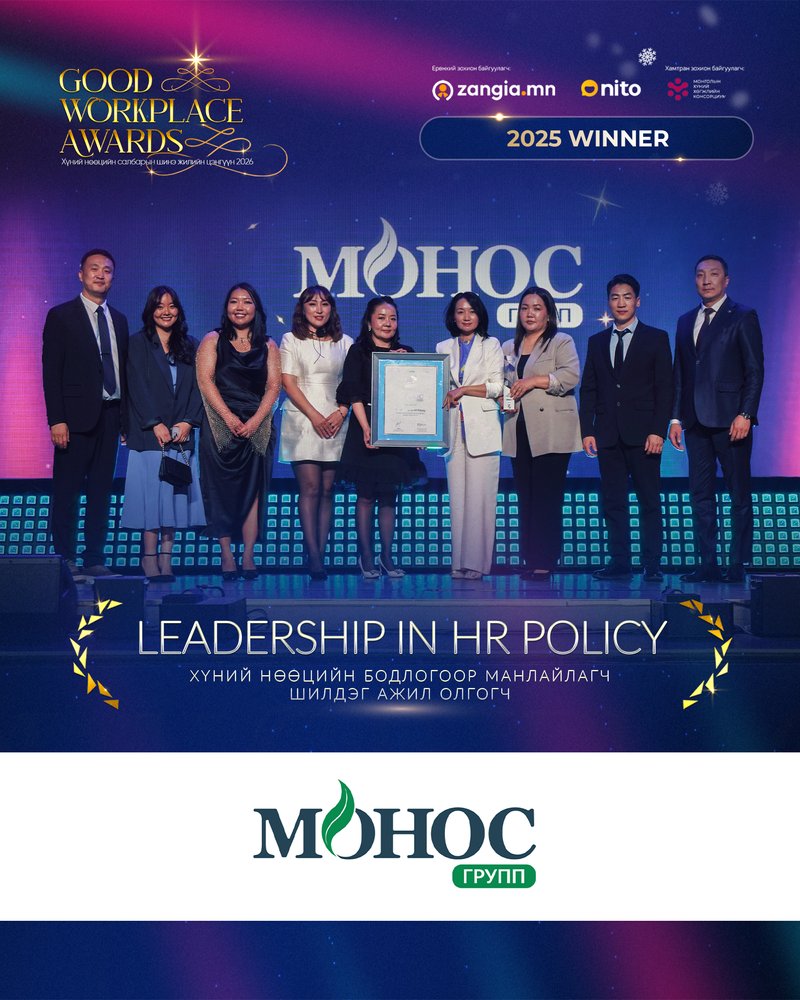 - 𝐋𝐞𝐚𝐝𝐞𝐫𝐬𝐡𝐢𝐩 𝐢𝐧 𝐇𝐑 𝐏𝐨𝐥𝐢𝐜𝐲 - Хүний нөөцийн бодлогоор манлайлагч шилдэг ажил олгогчоор Монос Групп ХХК