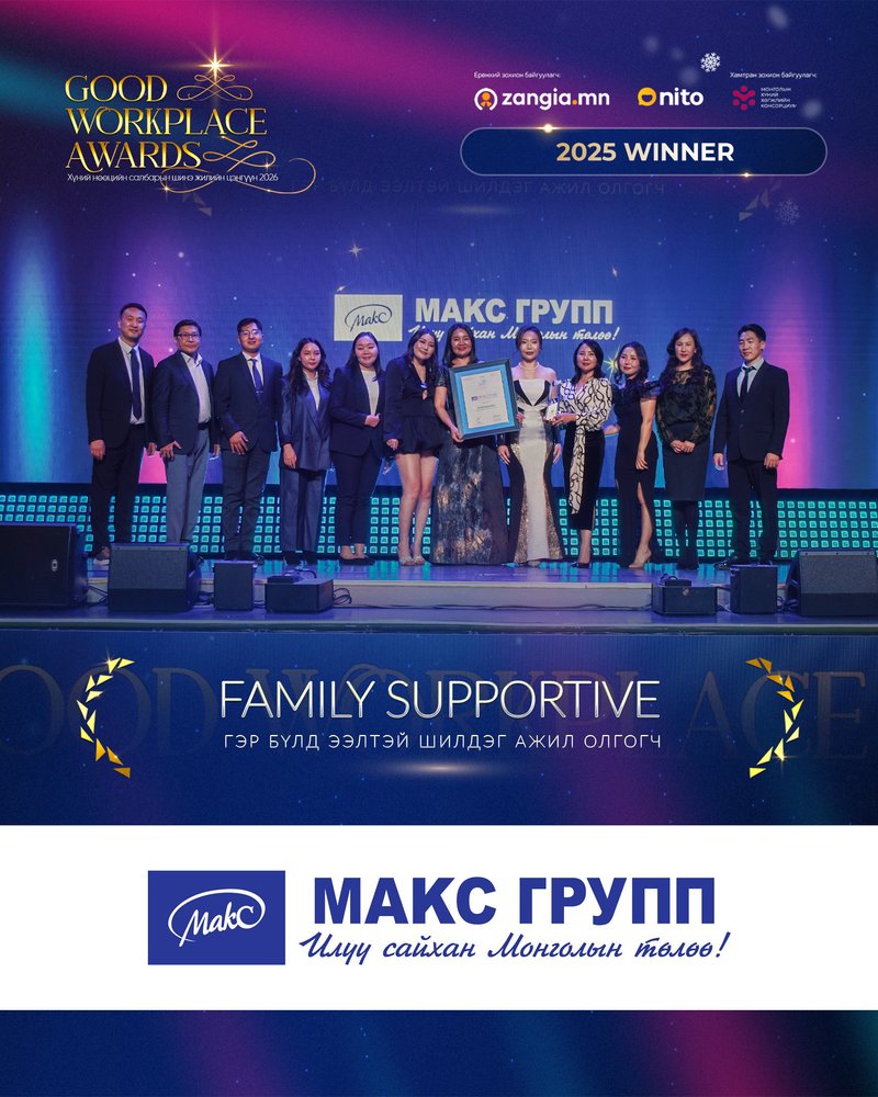- 𝐅𝐚𝐦𝐢𝐥𝐲 𝐒𝐮𝐩𝐩𝐨𝐫𝐭𝐢𝐯𝐞 - Гэр бүлд ээлтэй шилдэг ажил олгогчоор Макс Групп