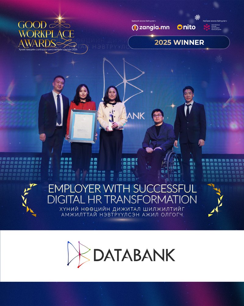 - 𝐄𝐦𝐩𝐥𝐨𝐲𝐞𝐫 𝐰𝐢𝐭𝐡 𝐒𝐮𝐜𝐜𝐞𝐬𝐬𝐟𝐮𝐥 𝐃𝐢𝐠𝐢𝐭𝐚𝐥 𝐇𝐑 𝐓𝐫𝐚𝐧𝐬𝐟𝐨𝐫𝐦𝐚𝐭𝐢𝐨𝐧 - Хүний нөөцийн дижитал шилжилтийг амжилттай нэвтрүүлсэн шилдэг ажил олгогчоор Дата бэйнк ХХК