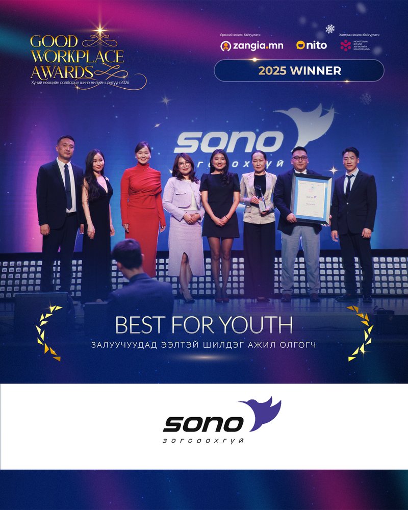- 𝐁𝐞𝐬𝐭 𝐟𝐨𝐫 𝐘𝐨𝐮𝐭𝐡- Залуучуудад ээлтэй шилдэг ажил олгогчоор "Соно финтек ББСБ" ХХК