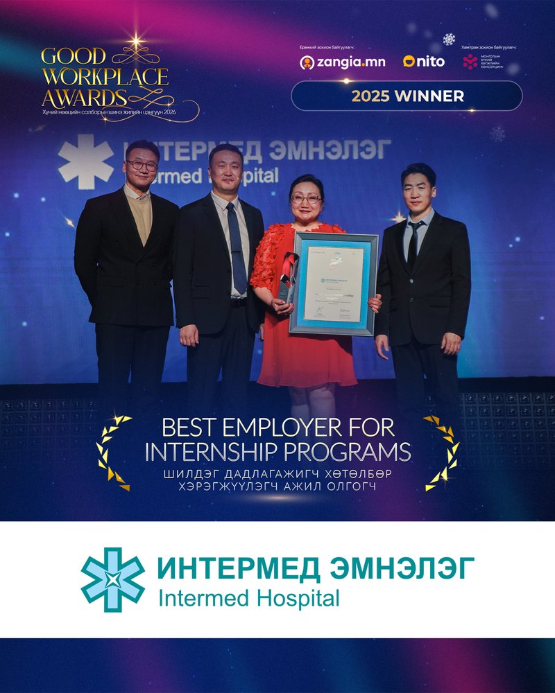 - 𝐁𝐞𝐬𝐭 𝐄𝐦𝐩𝐥𝐨𝐲𝐞𝐫 𝐟𝐨𝐫 𝐈𝐧𝐭𝐞𝐫𝐧𝐬𝐡𝐢𝐩 𝐏𝐫𝐨𝐠𝐫𝐚𝐦𝐬 - Шилдэг дадлагажигч хөтөлбөр хэрэгжүүлэгч ажил олгогчоор Интермед эмнэлэг