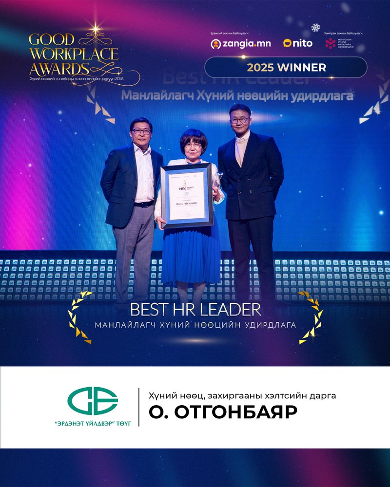 - 𝐁𝐞𝐬𝐭 𝐇𝐑 𝐋𝐞𝐚𝐝𝐞𝐫 - Манлайлагч хүний нөөцийн удирдлагааар Эрдэнэт үйлдвэр ТӨҮГ, Хүний нөөц, захиргааны хэлтсийн дарга О. Отгонбаяр