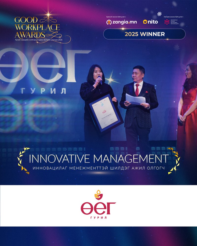 - 𝐈𝐧𝐧𝐨𝐯𝐚𝐭𝐢𝐯𝐞 𝐌𝐚𝐧𝐚𝐠𝐞𝐦𝐞𝐧𝐭 - Инновацилаг менежменттэй шилдэг ажил олгогчоор Өег Гурил ХХК