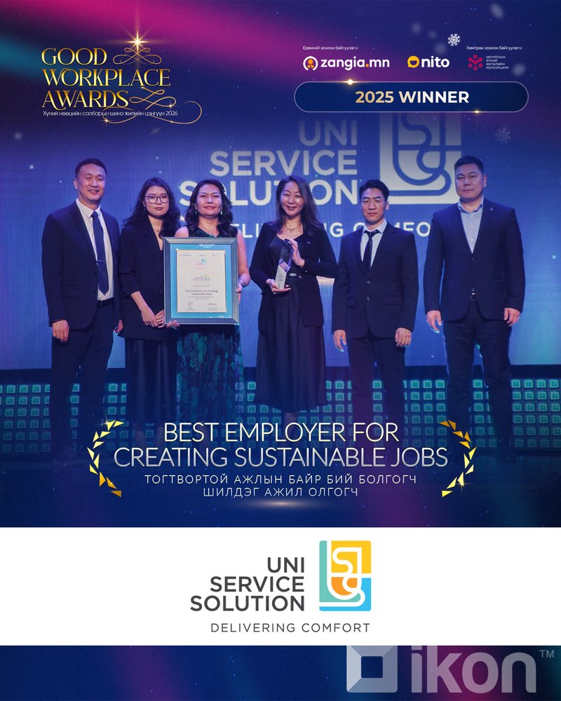 - 𝐁𝐞𝐬𝐭 𝐄𝐦𝐩𝐥𝐨𝐲𝐞𝐫 𝐟𝐨𝐫 𝐂𝐫𝐞𝐚𝐭𝐢𝐧𝐠 𝐒𝐮𝐬𝐭𝐚𝐢𝐧𝐚𝐛𝐥𝐞 𝐉𝐨𝐛𝐬 - Тогтвортой ажлын байр бий болгогч шилдэг ажил олгогчоор Юнисервис Солюшн ХХК