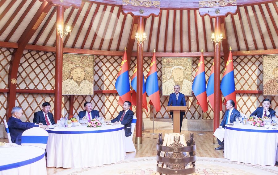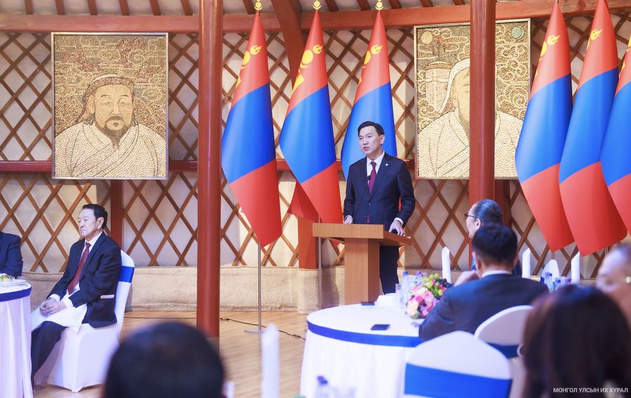 Төрийн ёслол хүндэтгэлийн өргөө цогцолборт болсон хүндэтгэлийн уулзалтын эхэнд УИХ-ын дарга Н.Учрал, эрхэм зочдод Монгол Улсын Үндсэн хуулийн түүхт 34 жилийн ойн өдрийн мэндийг дэвшүүлэв.