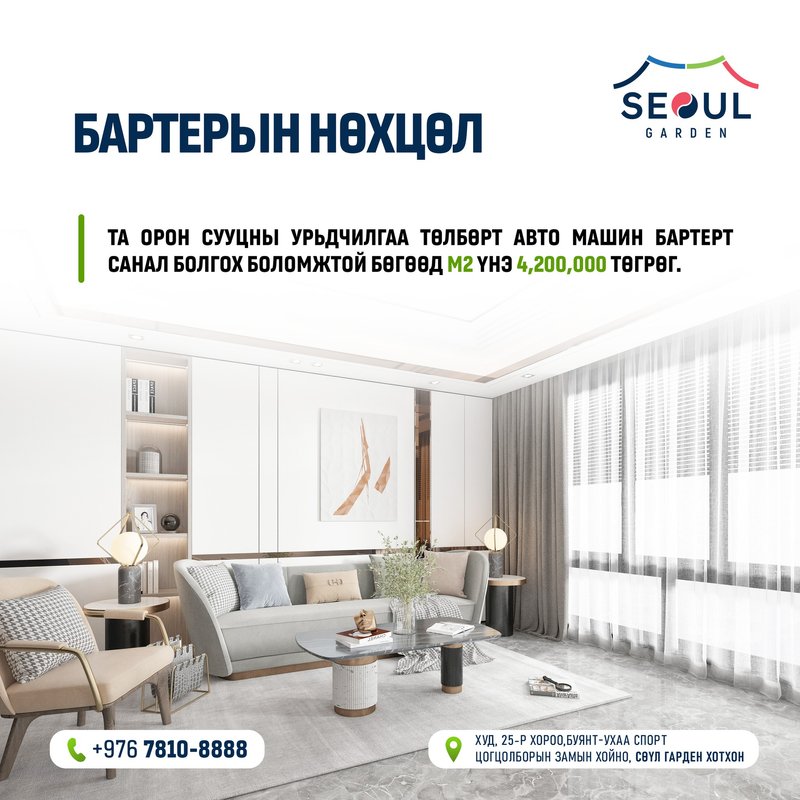 Та бүхэн дэлгэрэнгүй мэдээллийг 7810-8888 дугаараас болон СӨҮЛ ГАРДЕН хотхоны Facebook хуудсаар аваарай.